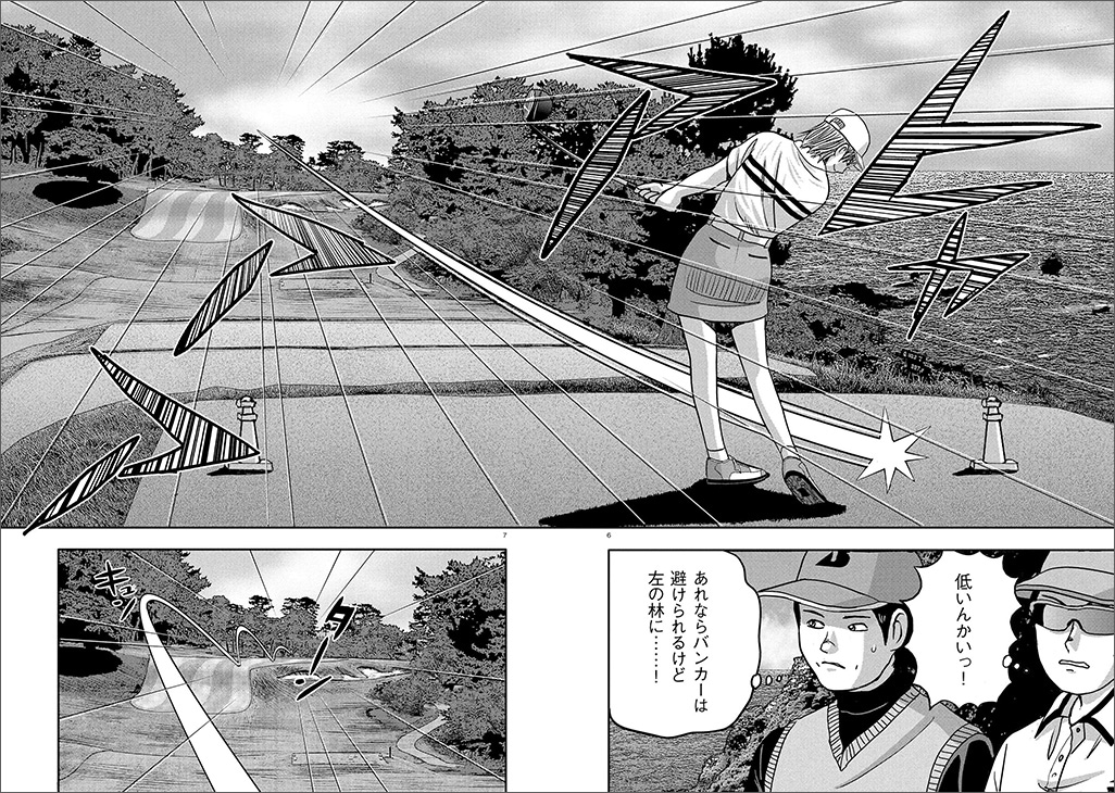 【第45巻】土壇場でも魅せる!「とんぼ劇場」の結末は? 「軽井沢ゴルフレディス」最終日も残り2ホールとなったが、未だにとんぼと朝菜ゆうな、有働二子女、原花英莉、夏目珠の5人に優勝の可能性が残されている激戦が続いていた。コースレイアウトや気象条件、そしてなにより他人との心の駆け引きによって1打1打にプッシャーがかかり、皆が必死にプレーする状況。そんな中でもとんぼはさらなるショットの引き出しの多さを披露し、周囲を驚かせる。かくして試合の展開は大きく動いていく……。