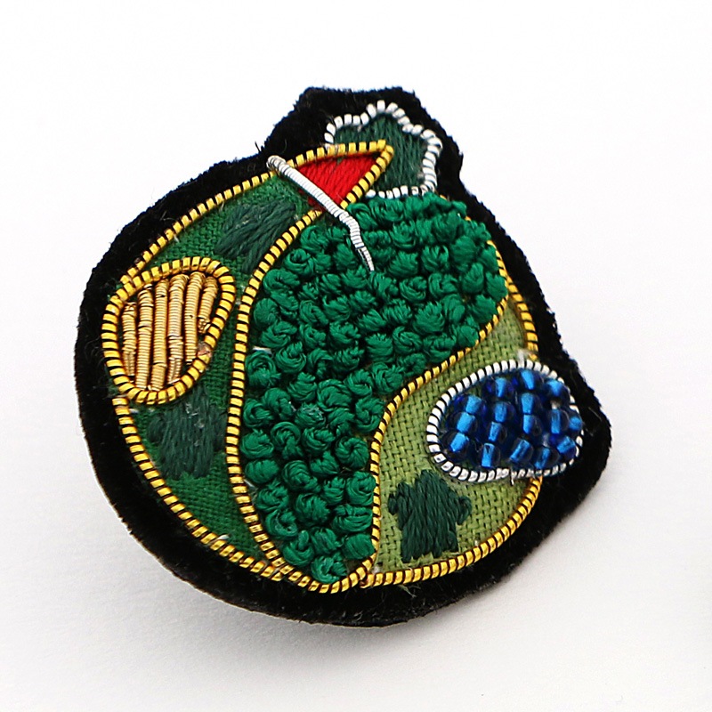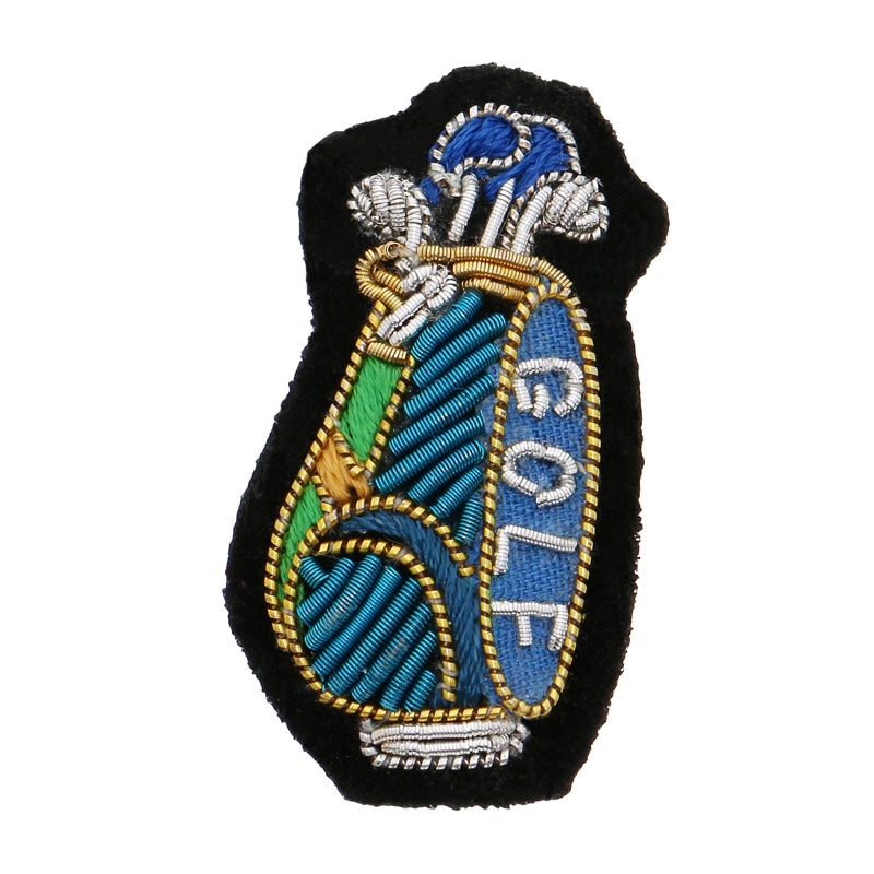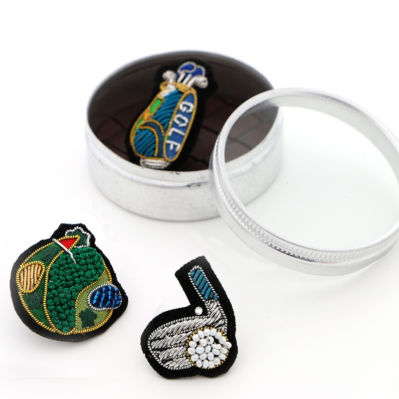 ユニークなゴルフモチーフを繊細なザリ刺繍で表現