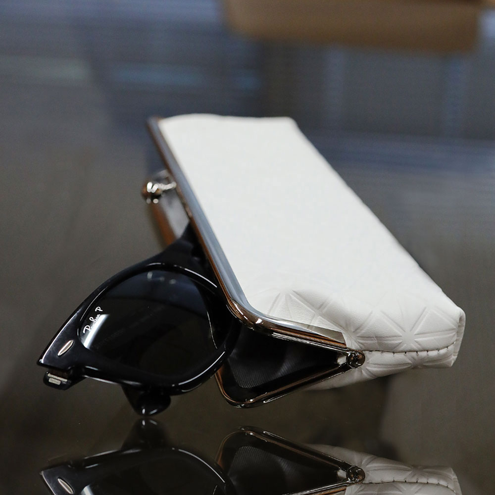 ワンクリックで開け閉めできるガマグチは、シンプルでとても便利。マチがあるのでサングラスの収納にもピッタリ。