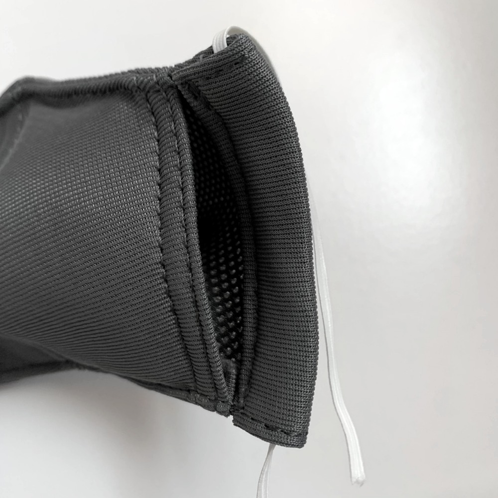 上記の効果を上げるため、2重構造になった本体の外素材と内素材の隙間部分に不織布製マスク、キッチンペーパー、コーヒーフィルター、ティッシュペーパーなどを挟んで使用出来ます。(※使い捨てマスクは付属しません。)