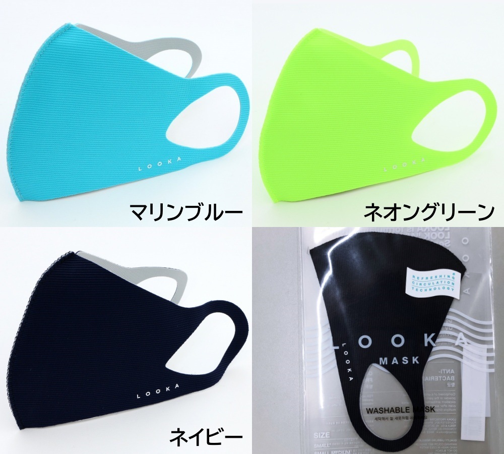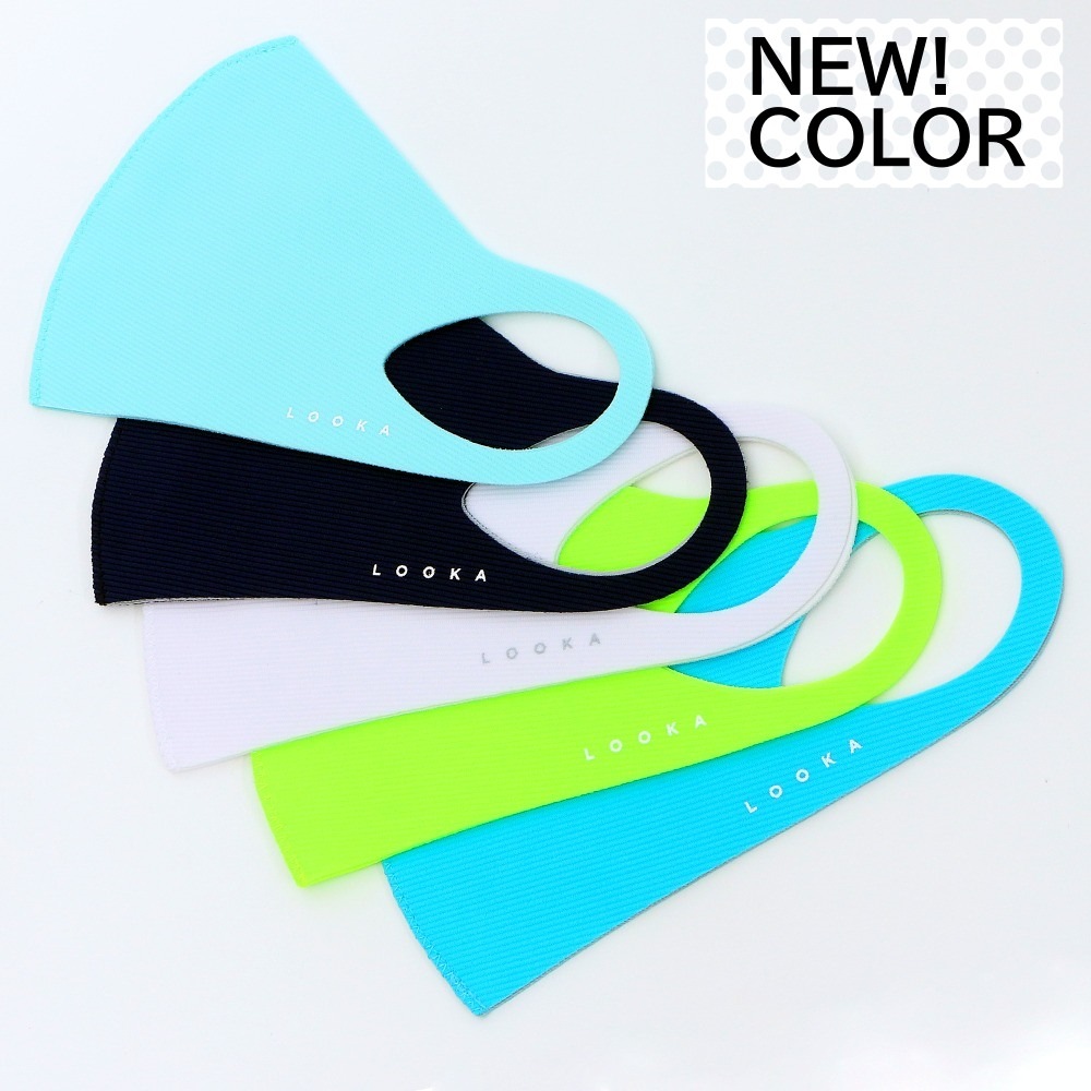新色追加!ホワイト・ミントブルー・マリンブルー・ネオングリーン・ネイビー。ポロシャツやTシャツなどのトップスとマスクの色を合わせると、全体的なバランスがよくコーディネートにオススメ!何色か購入してその日のウェアに合わせてみて!