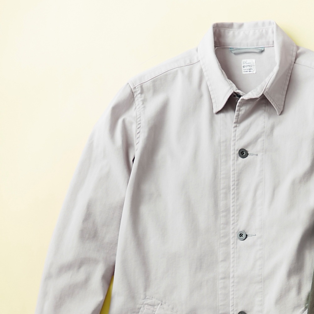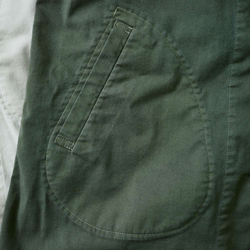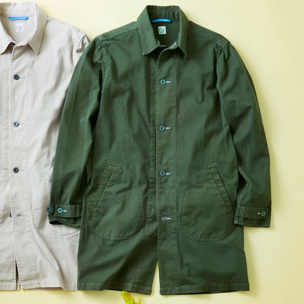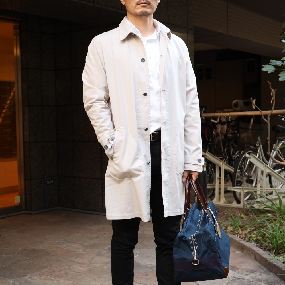 製品に縫い上げて色を付けているので、生地染めと違い、立体感のある色合いに。昼夜の温度差がある春先や秋口にはこの1枚あると重宝するコート。