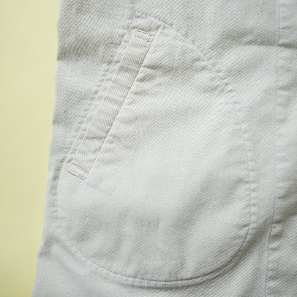 今回WGDの完全別注のショップコートをゴルフの行き帰りではジャケットの上にサッと羽織れ、上品な普段使いも出来る。ONOファンのお手持ちのパンツともコーディネート出来るようにとONOに依頼。ちなみに、このショップコートとは、もともとアメリカの“店”で着られていたことからこの名がある。