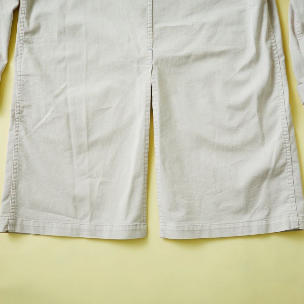 後ろは、裾部分に入った深めのスリットで歩きやすい。ベージュはカジュアルなビジネスシーンでも活躍。