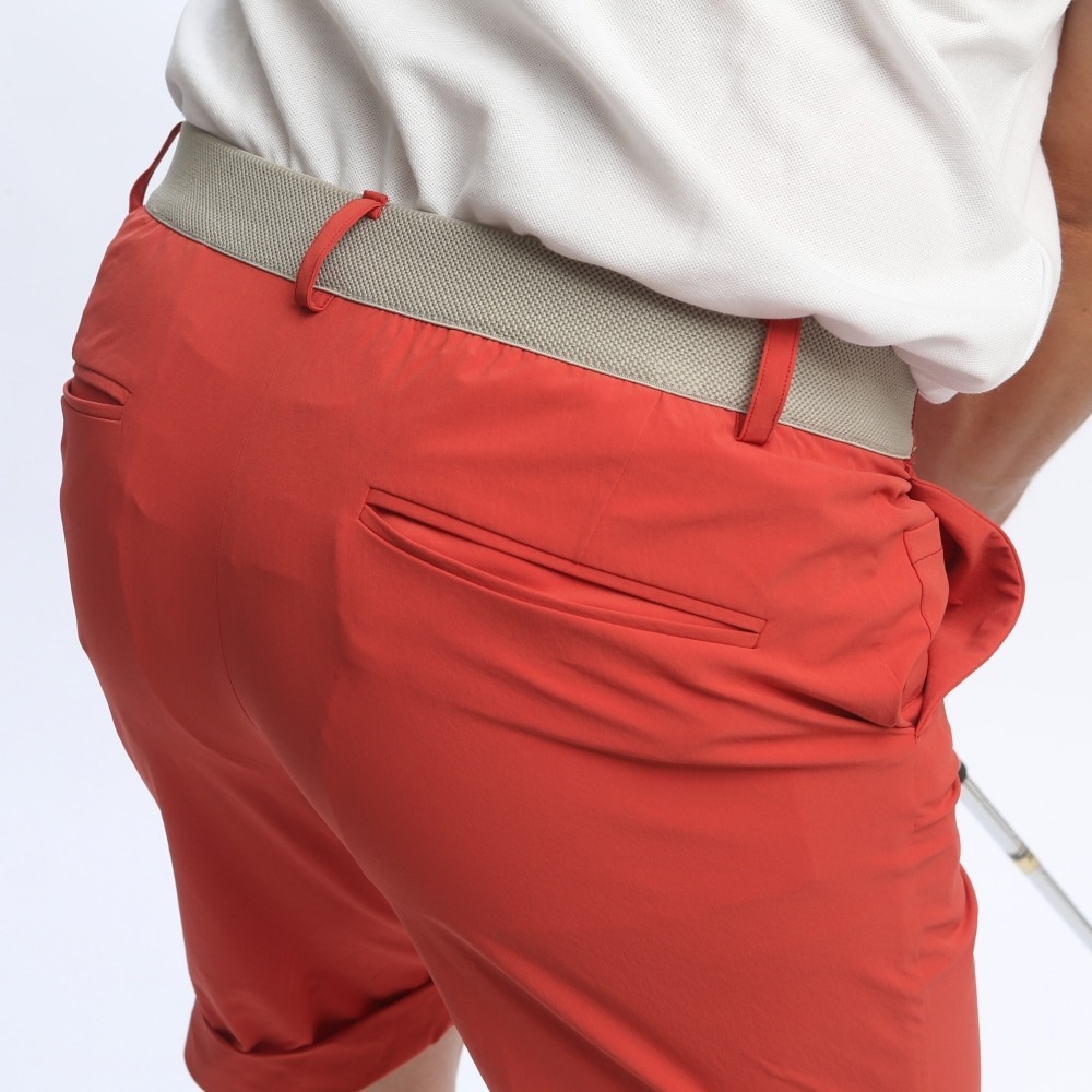 ウエストゴムにありがちな野暮ったさがなく履き心地はラクラク、スポーティな見た目はどんなゴルフウェアとも合わせやすい。普段使いはもちろんだが、軽活なこのハーフパンツはぜひゴルフ場で着てほしい!履き心地の良さ、きめ細やかな配慮を感じられる。