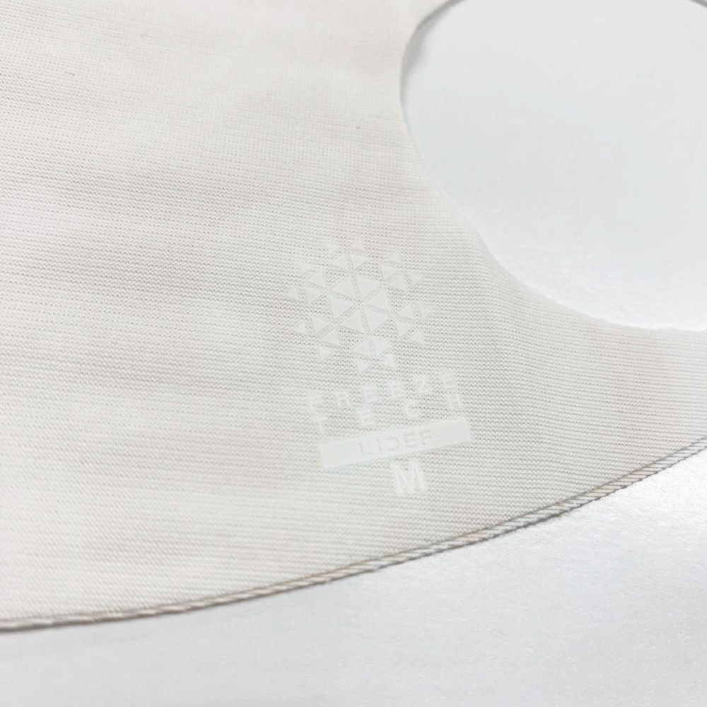裏面に施された冷感プリント、機能性とデザイン性を兼ね備えた。マスク着用時の肌の表面温度が通常のマスクより2度以上低くなる。