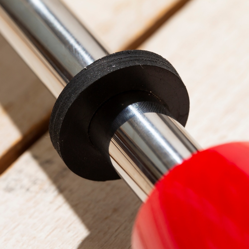 3つのコマで理想的な「タメ」を体感!スチールシャフトに木製の3つのコマ(先端は固定。残り2つは可動)が付いており、重量は800g前後と振りごたえは十分。