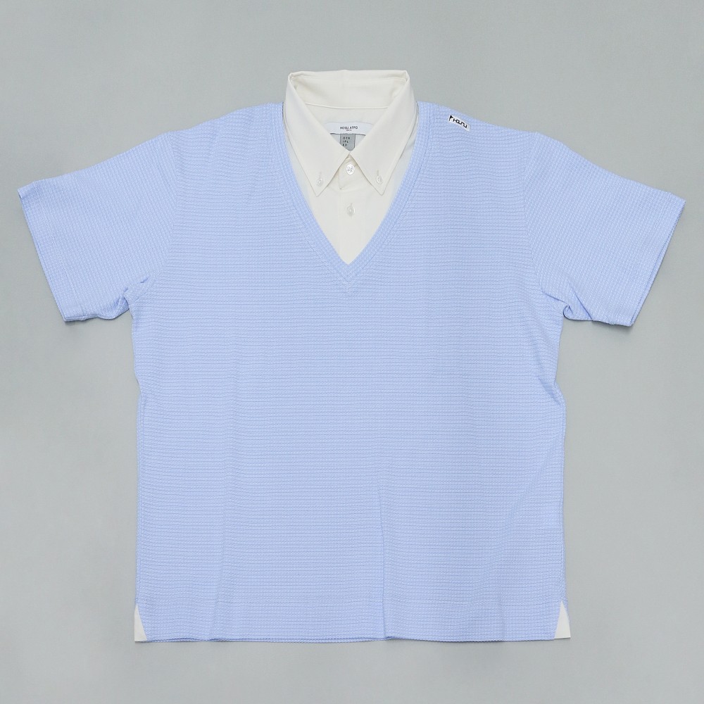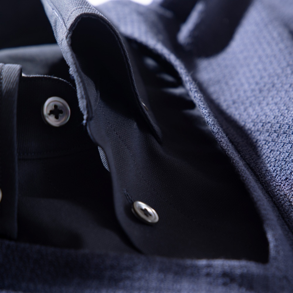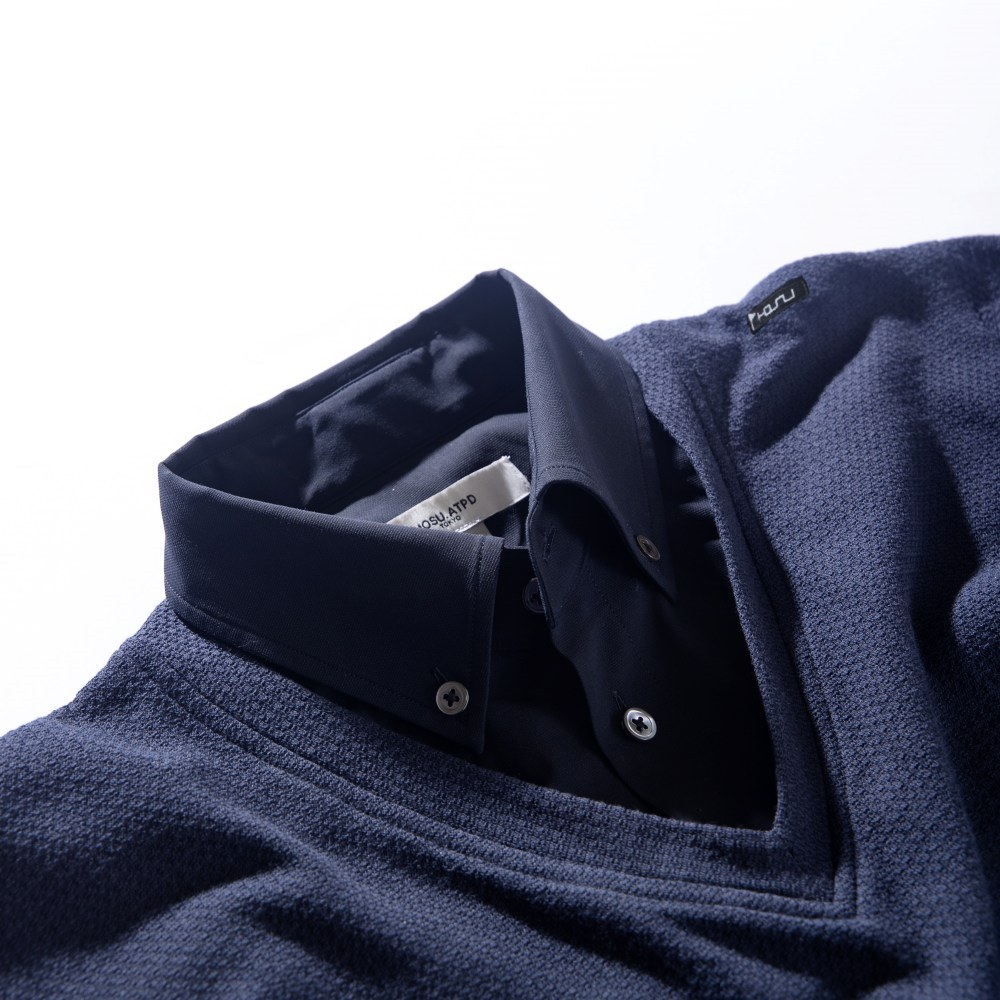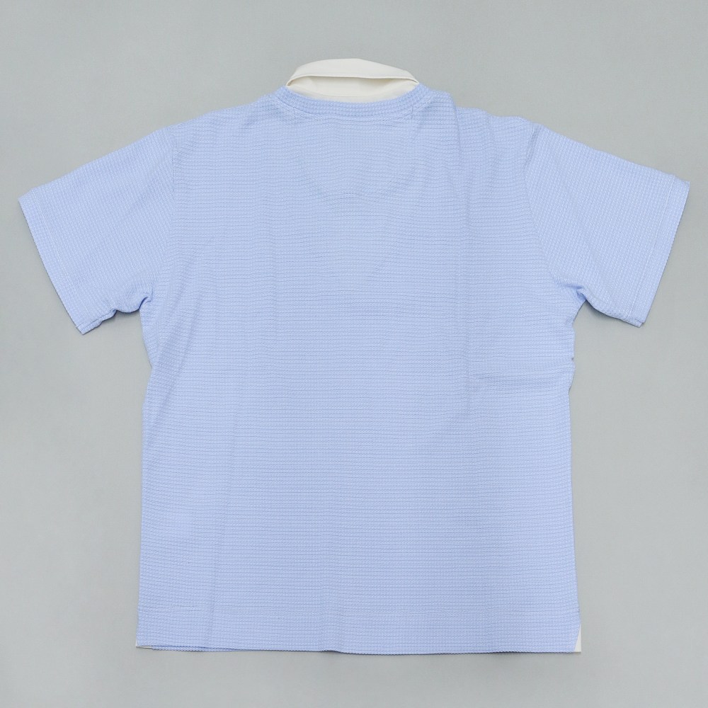 ドレスシャツのパターンを取り入れた襟に、クールマックス素材をレイヤード。シャツとニットのスタイルを1枚で仕上げることが出来るドレスポロシャツ。シャツ地には適度なハリ感を持ったストレッチ素材を採用し、メインとなるニット部分は吸汗速乾の機能素材「COOL MAX」を採用。凹凸感のある編み地が特徴の生地で、肌との接地面に隙間が出来、夏でも涼しく快適に着用出来る。
