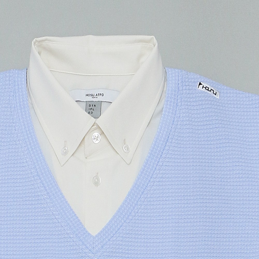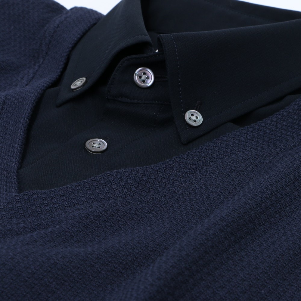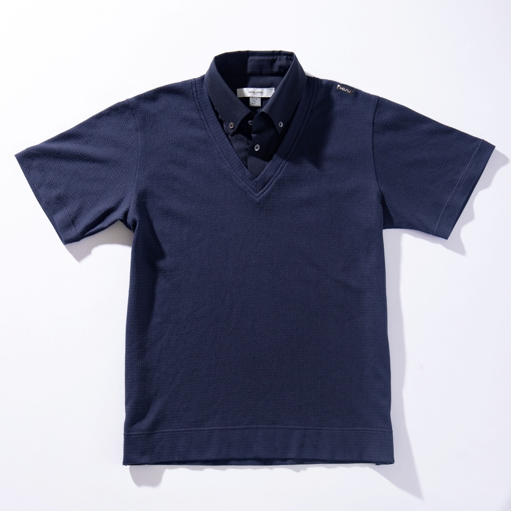 ポロシャツ地は襟部分だけ、1枚でニットとポロシャツのレイヤードスタイルを涼しく楽しめる。あえて派手さを抑えて同系色にしつつも異素材を組み合わせて重ね着感覚で着られるのがポイント。さらに身頃の生地は吸汗速乾、通気性に優れたクールマックスを使用し、夏場でも快適にプレーが楽しめるのだ。 月刊ゴルフダイジェストの連載でお馴染みのスタイリスト、森岡弘さんも「上手にレイヤードを楽しんでいるゴルファーはどこか余裕を感じますね」という通り、夏の新定番ポロとしてぜひチェックしてほしい。