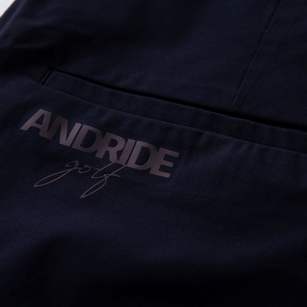 シームレスとは、通常であれば別々のパーツを意図で縫い合わせていくところを、糸は使わずに圧着や特殊な接着剤などで張り合わせて仕立てる製法。技術開発によって、下着やアウトドアなどの専門として使われていた無縫製の技術を、ポロシャツ、パンツ、ジャケットなどに落とし込んだ今までにないまったく新しい洋服が完成した。縫い代や見返し・ポケット布などがゴロつかないので、1枚の布を羽織ったようなサラッとした着心地。この服を創り出したのは、アパレルデザイン企画製造をしている「ベントスデザインオフィス」。某有名ゴルフアパレルでの製造も手掛けている。今回は、Golfpocketオリジナルで新しいゴルフブランド「ANDRIDE golf」を作ってもらった。ここでしか手に入らない完全オリジナルアパレルだ