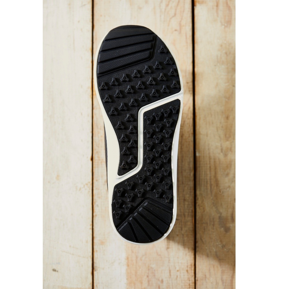 そのノウハウが存分に活かされたこのスパイクレスシューズは、アッパーに通気性・耐水性に優れた素材を、ソールにはグリップ力ある素材を採用。