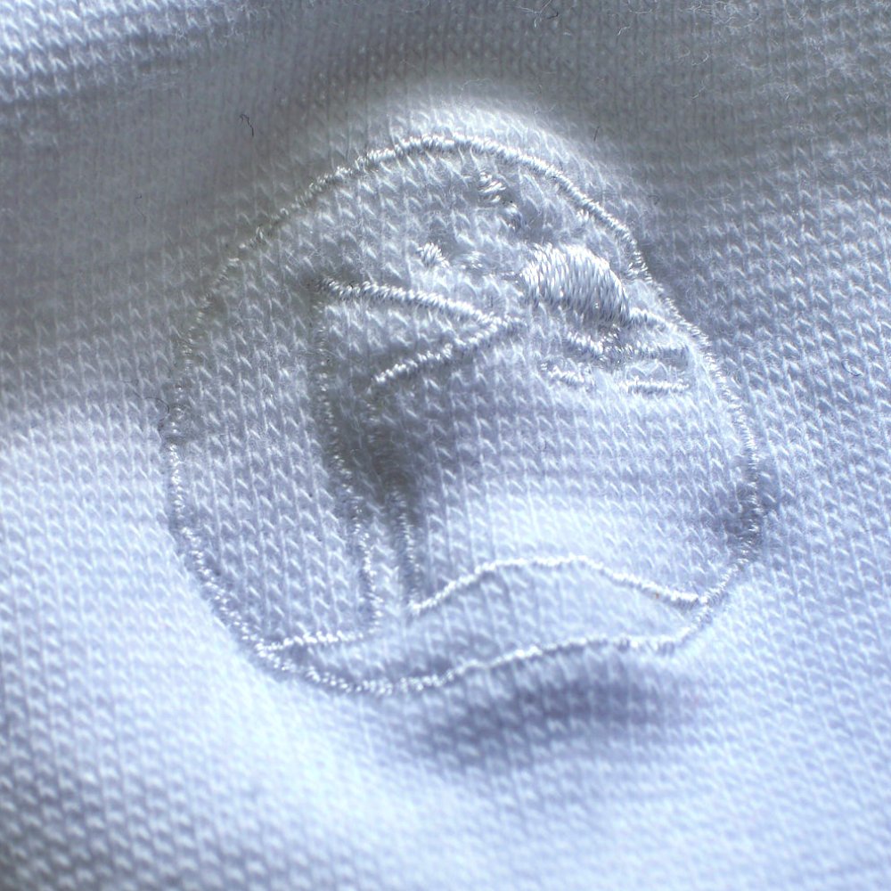 右袖には、フラッグと海に沈む夕日の刺繍ロゴ入りです。
