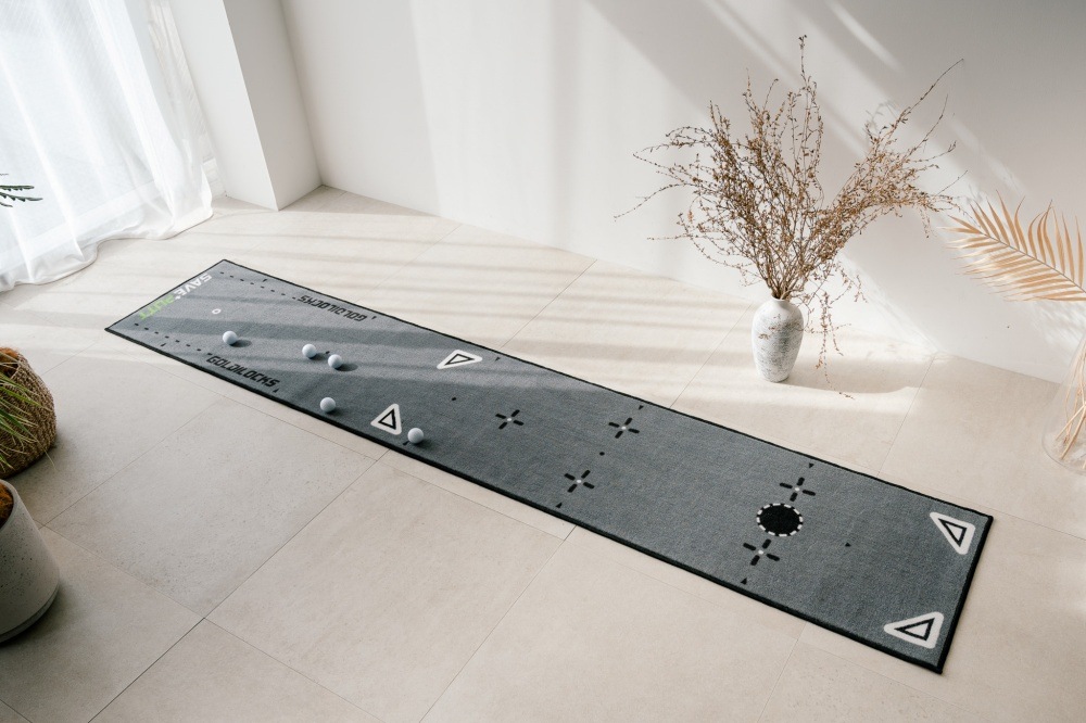 練習を記録するために必要なのは手持ちのスマホやタブレットだけで、専用のパターなども必要なし。実際の営業に近い10フィートに設定されたマットはパターマットとしては珍しいグラファイトカラー(グレー)を採用(グリーンもある)し、シンプルで上質なデザインなのも魅力だ。