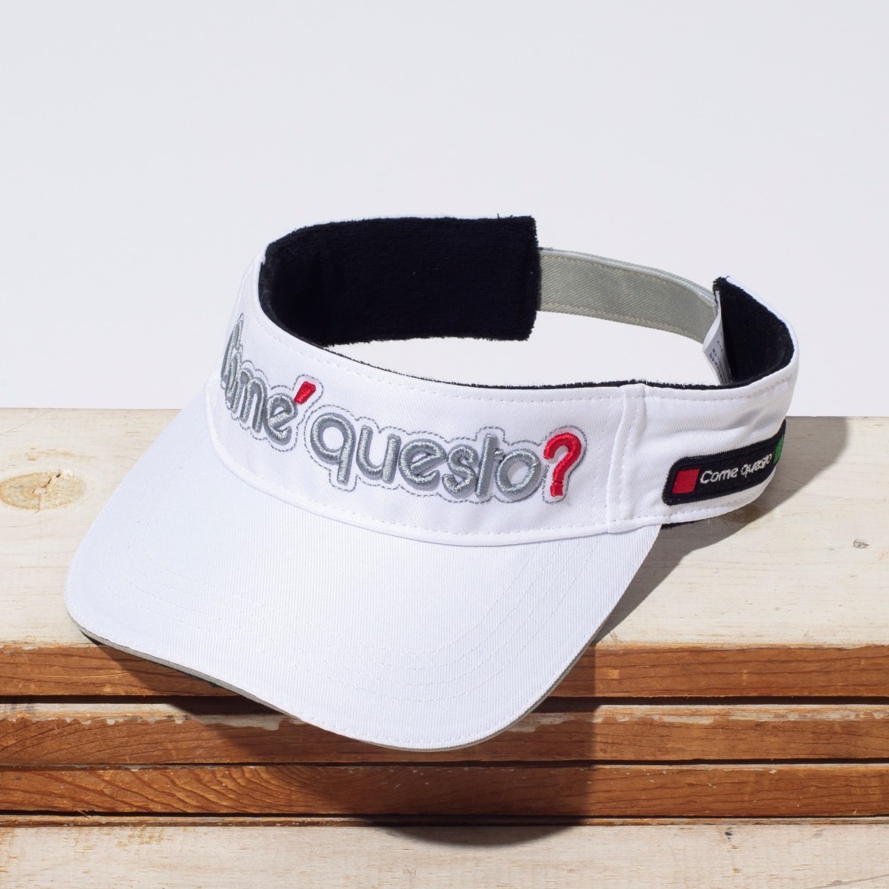 飽きのこないデザインで大人気のブランド コメクエストから、今年の夏も涼しげなバイザーが届きました。素材にポリエステルを採用し、かぶった時にも軽くて乾きやすいのがポイント。立体的なコメクエストの3D刺繍が、目を引くデザインです。サイドや後ろにも刺繍が施されていて、どの方面からでも見えるロゴが飽きさせません。他の人とかぶりたくないというお洒落ゴルファーにも持ってこいのアイテムです。