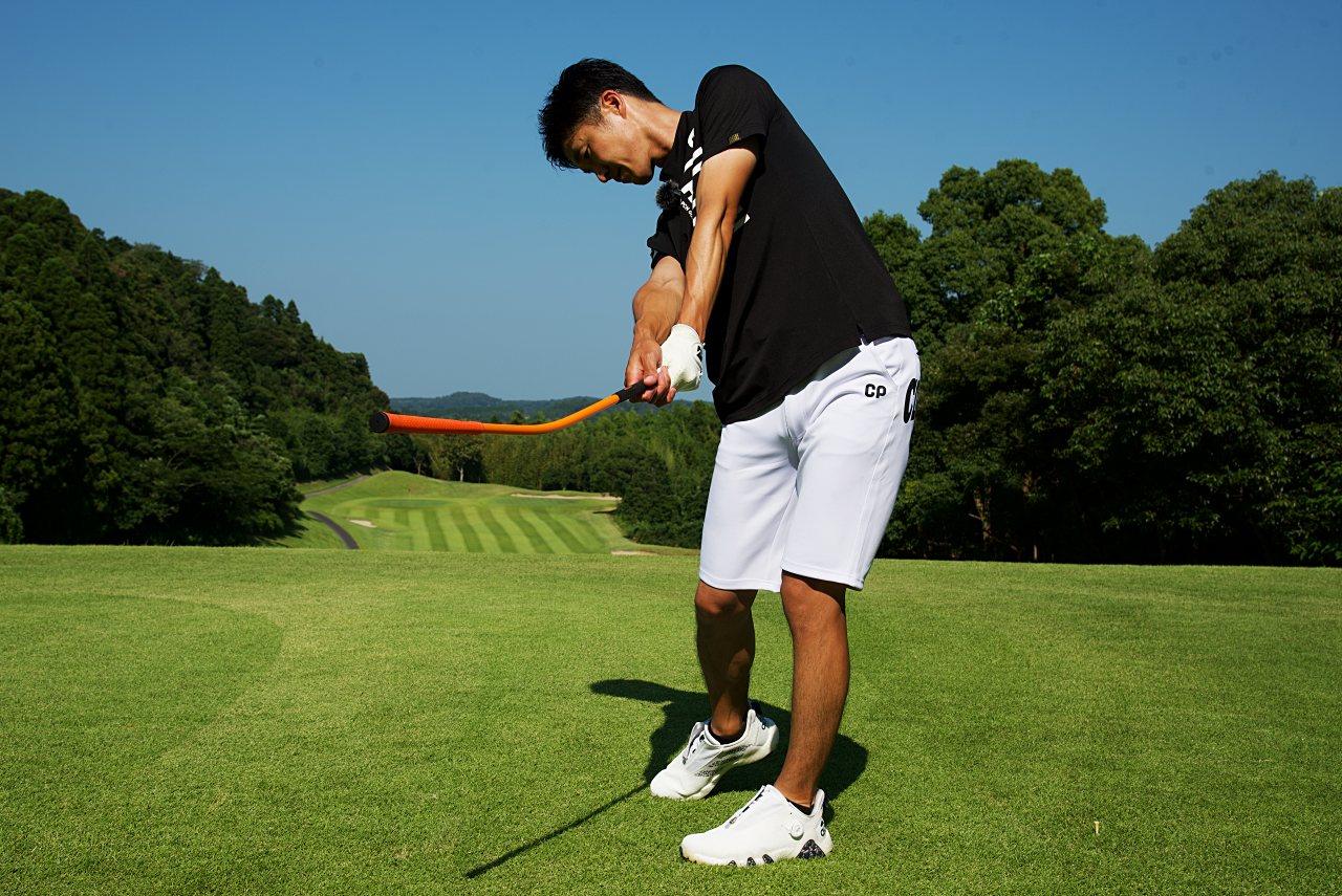 フィニッシュでは、ヘッドが走ることでこのようにシャフトが絡みつくような状態が正解