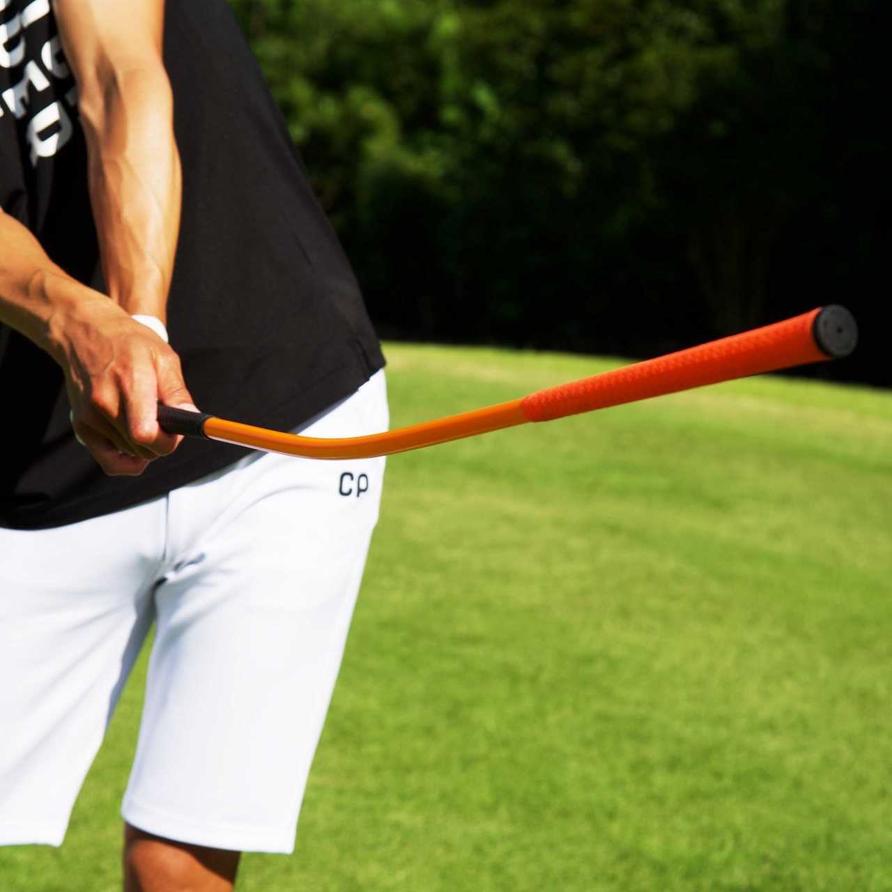 また、グリップの持ち手を黒からオレンジに変えると、ライビースイング ベンド ミッドを大幅に軽く感じられることに気がつくはず。この軽さを活かして素早く素振りをすることで、ヘッドスピードアップ効果も期待できます。