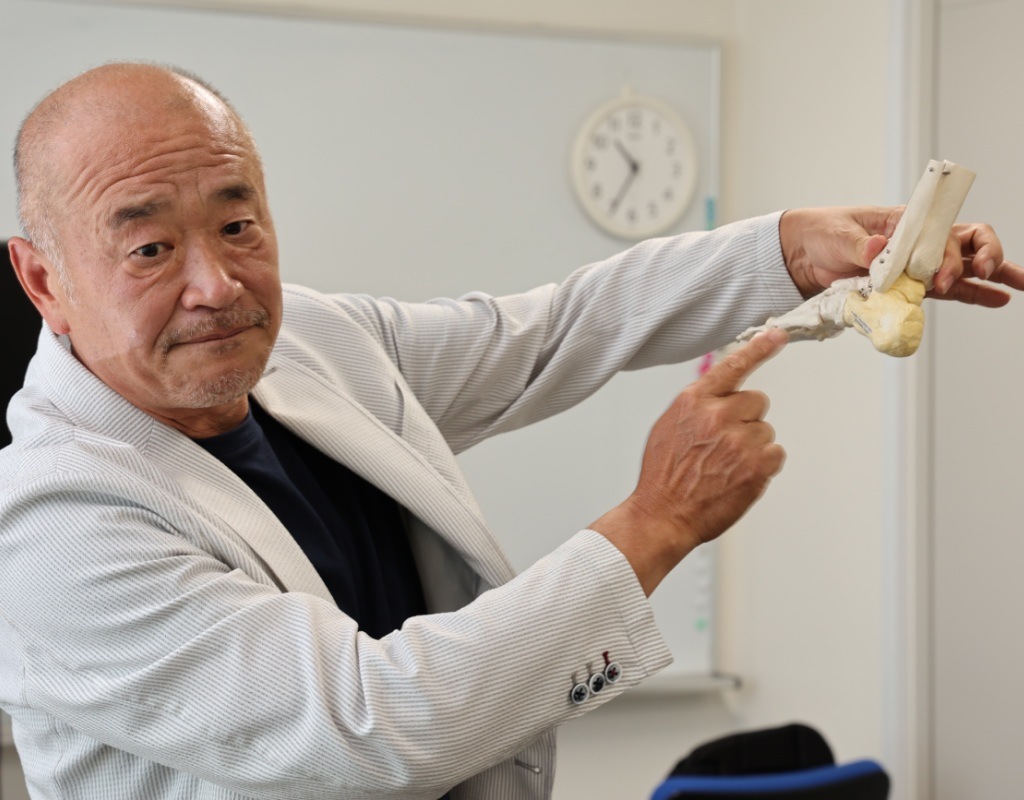 リフレックス社長の桜井慎一郎さん。靴業界に30年以上携わり靴づくりの工程を熟知している。自身も腰痛があり、足裏アーチに合わせて自由自在に変形できるインソールを開発。