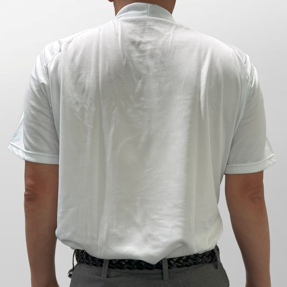 裏面もいたってシンプル。洗濯を繰り返しても冷感機能をキープしてくれるのもポイントで、吸汗速乾性と伸縮性に優れたストレッチ素材を使用した夏を快適にするモックネックシャツは、真夏ゴルフの必需品。