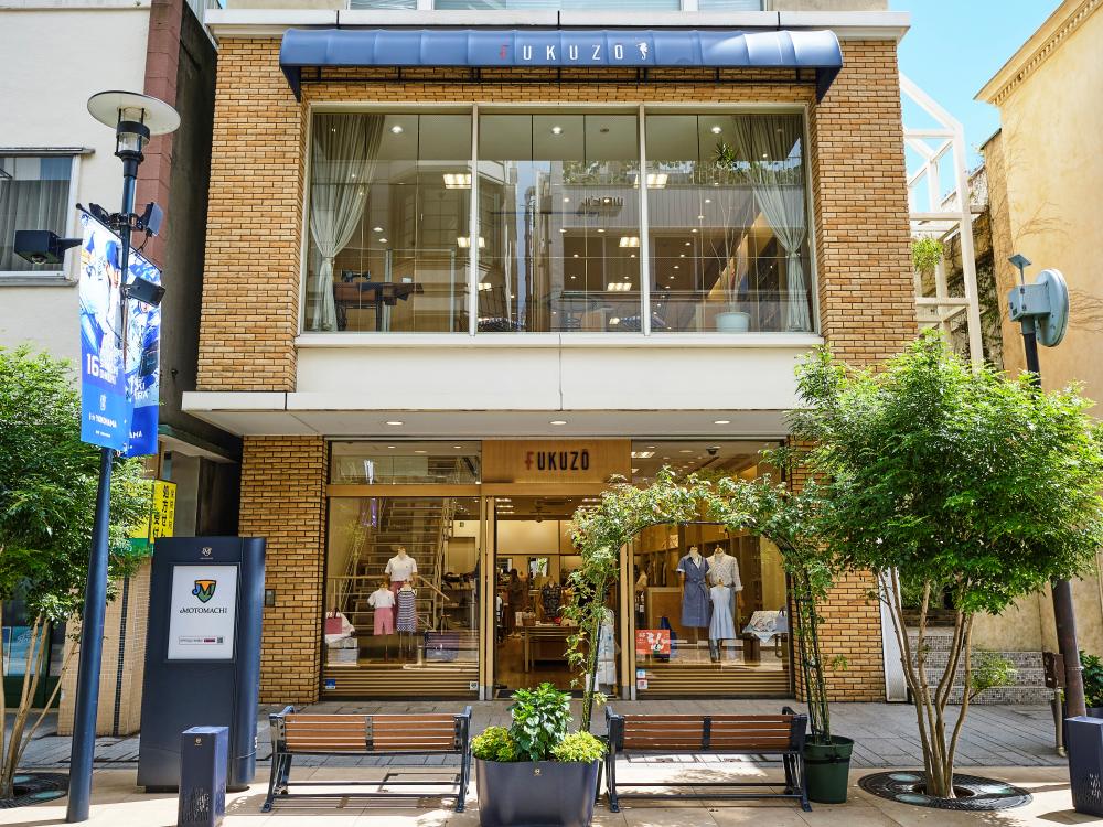 フクゾー洋品店 昭和21年創業。横浜・元町ブランドのFUKUZŌ(フクゾー)洋品店。すべて国内生地、自社生産という一貫したこだわりで、完成度の高い商品を世に送り出し続けているアパレルメーカー。元町本店の2階奥はアトリエになっており、裁断、縫製、刺繍、ボタン付けまで商品によりすべて手作業で行っている。デザインは、初代、二代目が考案したベーシックなスタイルを継承し、その時代の空気に合わせて変えるよう心掛けているという。