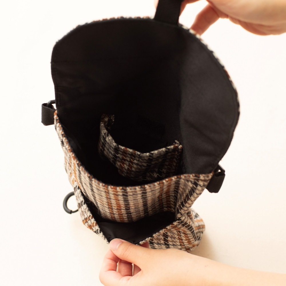 秋冬の季節に合う新素材“ウール”を使用し、千鳥格子柄をチョイスしました。ブルー・ベージュ・グリーンの3色からお選びください。
