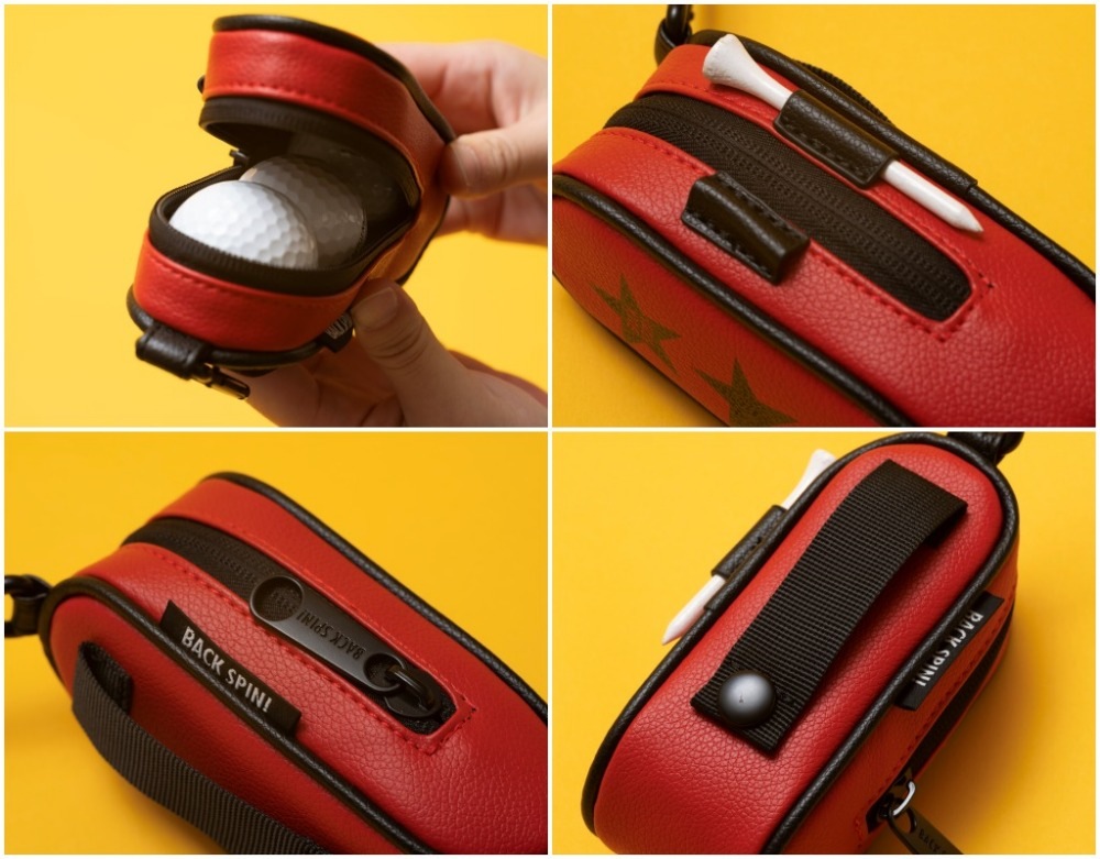 バックスピンのスターボールポーチは、開口部分が広く、ボールの取り出しやすさがポイントです。ゴルフボールを3個収納可能で、ポーチのサイドにはティペグホルダーもついていて、超機能的!
