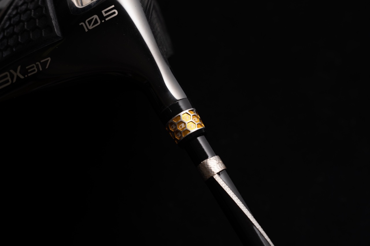 シャフトは金/銀糸を使用し専門の職人が水引加工を施した高級感あふれる仕様。宇宙航空分野グレードの超高弾性炭素繊維を全面に使用した剛性分布を徹底的に作り込んだデザインチューニング製の専用設計カーボンシャフトがヘッドの性能をマックスまで引き出します。