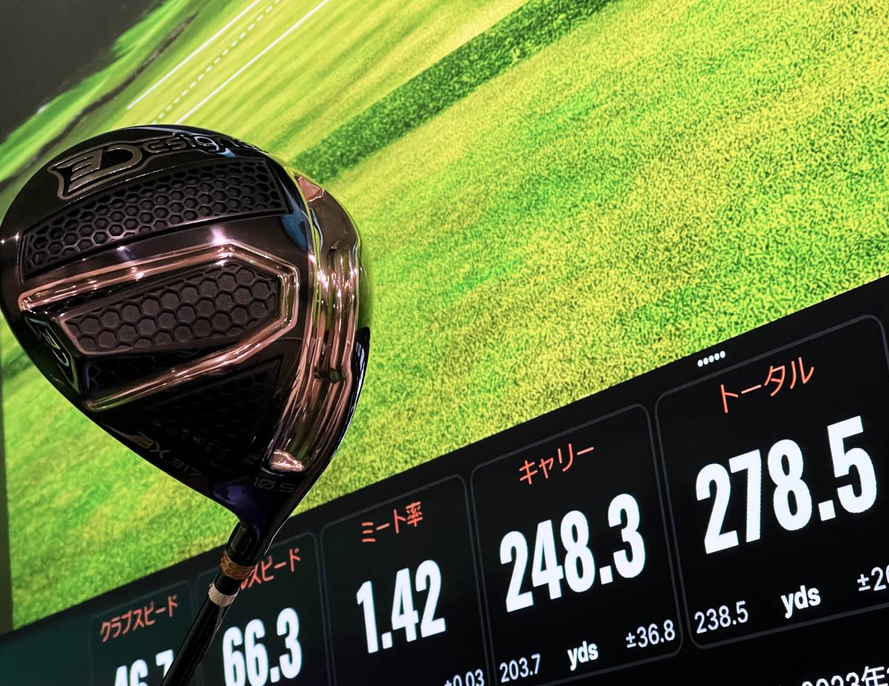はじめにお伝えすると、このデザイナー ドライバーは高反発、つまりルール不適合です。ただし、だからこそというべきか、その飛距離性能は半端ではありません。