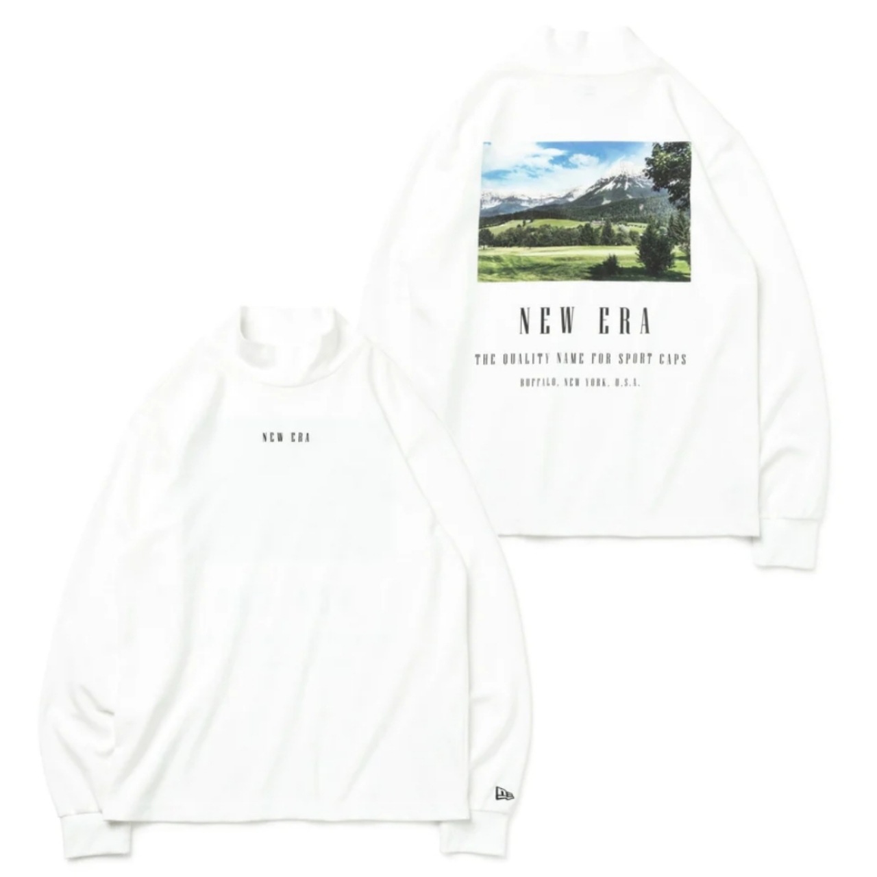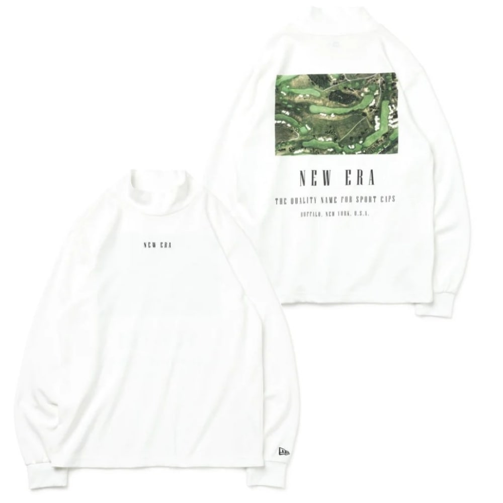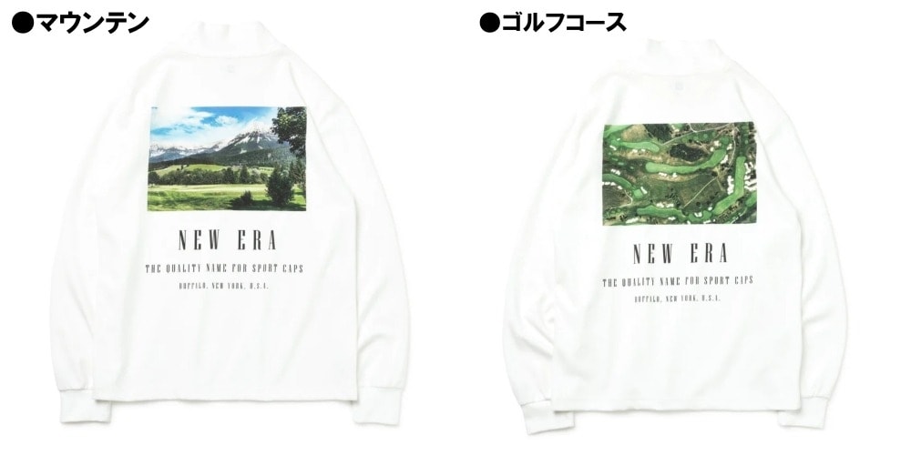 メジャーリーグ・ベースボールの全球団に、公式選手用のオンフィールドキャップを供給している「ニューエラ」から、機能性とデザイン性を兼ね備えた、季節の変わり目に使えるハイカラーネック長袖Tシャツが登場。背面にはゴルフ場と山をあしらった「マウンテン」または「ゴルフコース」のフォトプリントが施されています。あなたのお好みはどちらですか?