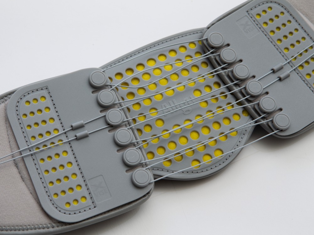 特許申請中のランバーパット付きセンタープレートを搭載したクロスバイス。骨盤を締めると同時に、腰椎を押さえ、背骨の角度を理想的な状態に導きます。結果、よい姿勢を保つことができます。