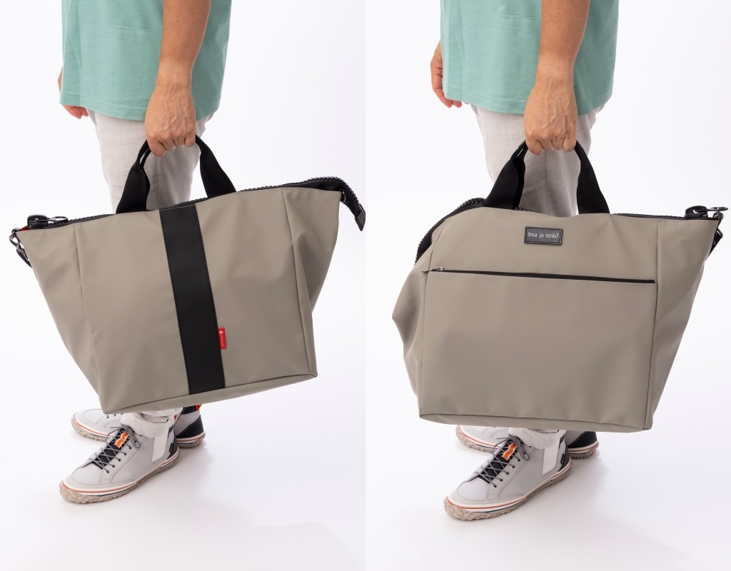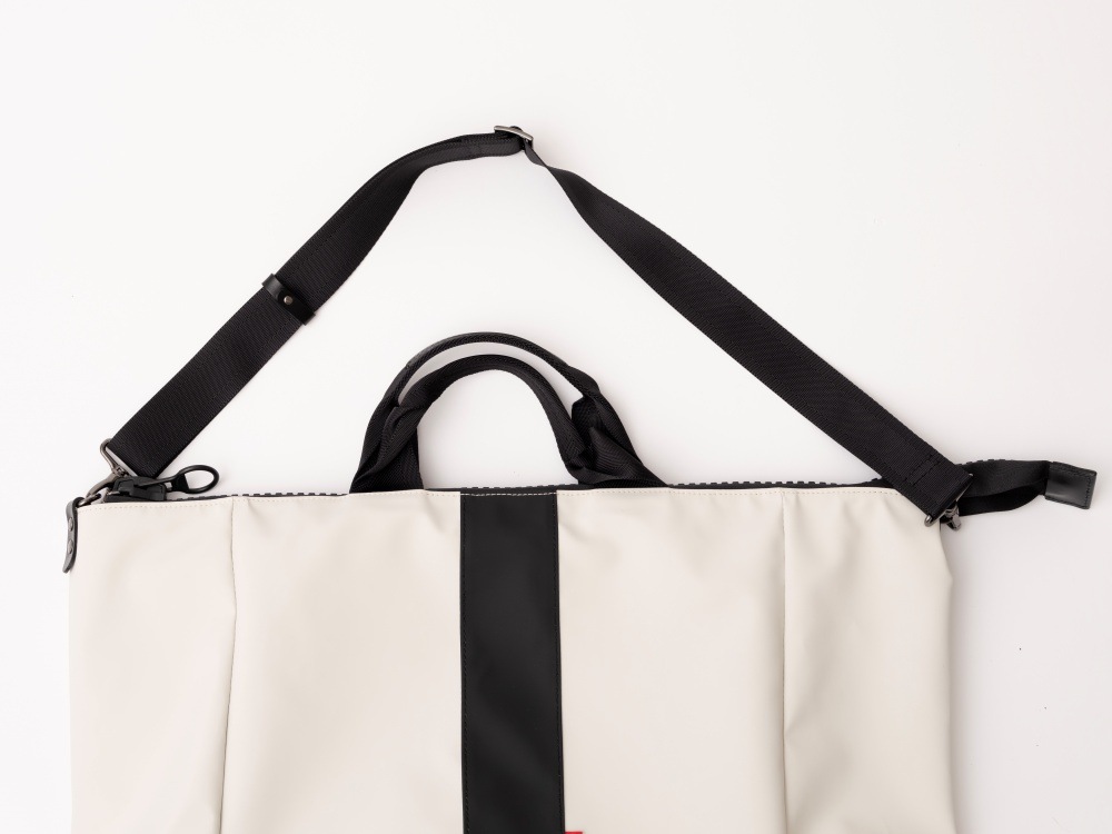 また、取り外し可能なショルダーストラップつきで、手持ちだけでなく、荷物が多くなったときには肩掛け仕様にもなる2WAY仕様。