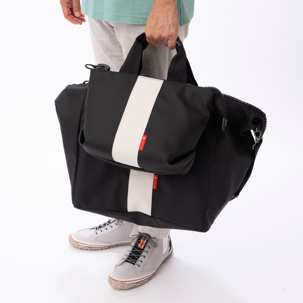 折りたたむとペタンコに。かさばらないのでご使用にならないときでもご自宅での収納にも困りません。また、出張先や旅先まではスーツケースにしまっておいて、荷物が多くなった際のサブバッグとしても◎