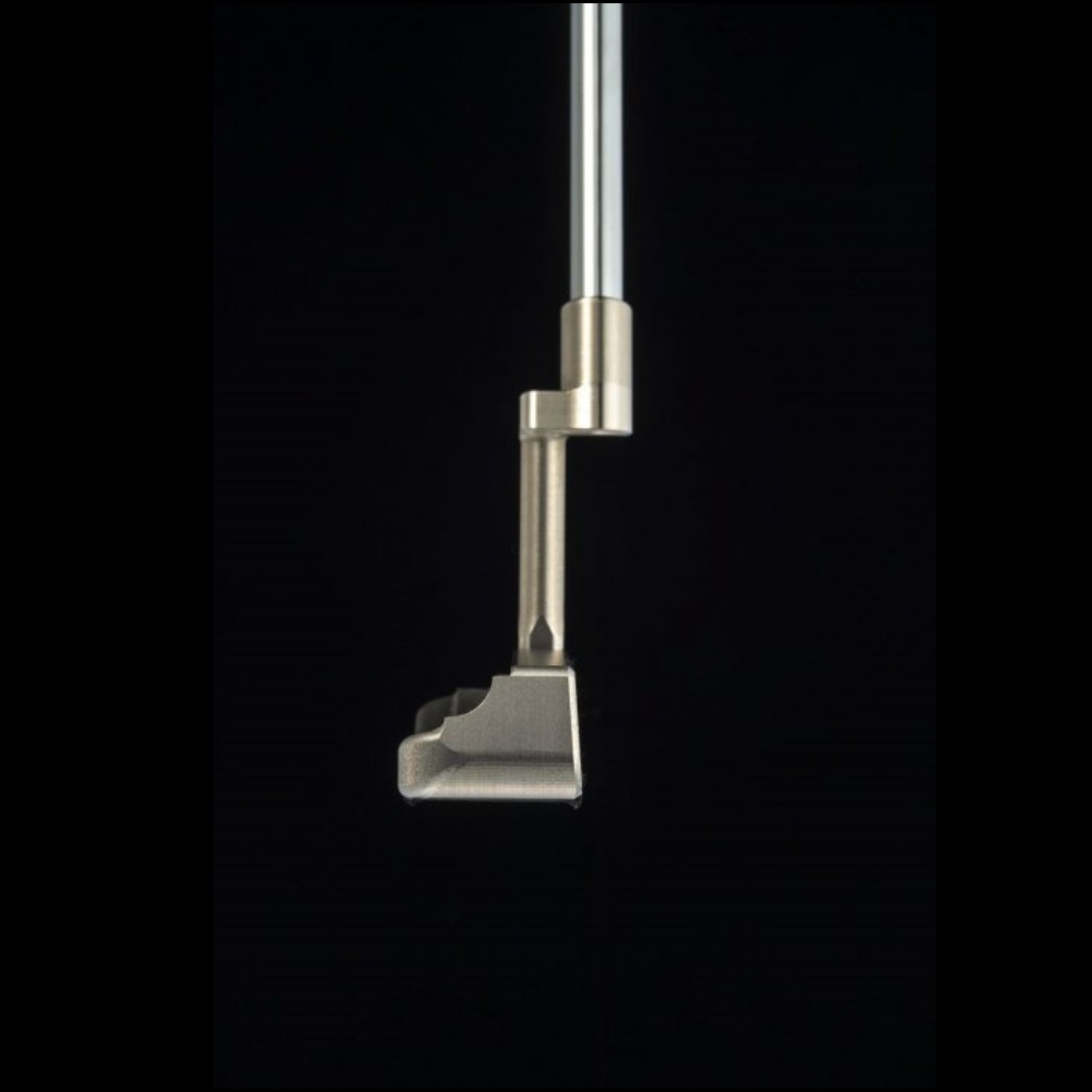 ブルース・サイズモア氏は、スーパーストローク社でパター製作に携わっていた経歴の持ち主です。形はオーソドックスなピン型でソール形状はやや船底。美しい木目調のフェース(デトロイト木目)部分のデザインは、日本人女性の大学教授が考案したもの。個性的で秀逸なパターです。 インサート部分のデトロイト木目に加え、フェースは伝統的なハンドメイドの抽象的なダイヤモンド模様で、99.9%の純銀と99.9%の純銅をそれぞれ14層を使用しています。構えやすくフェース面はぶれにくく、安定感があり狙いやすく、打感はとても柔らかい。