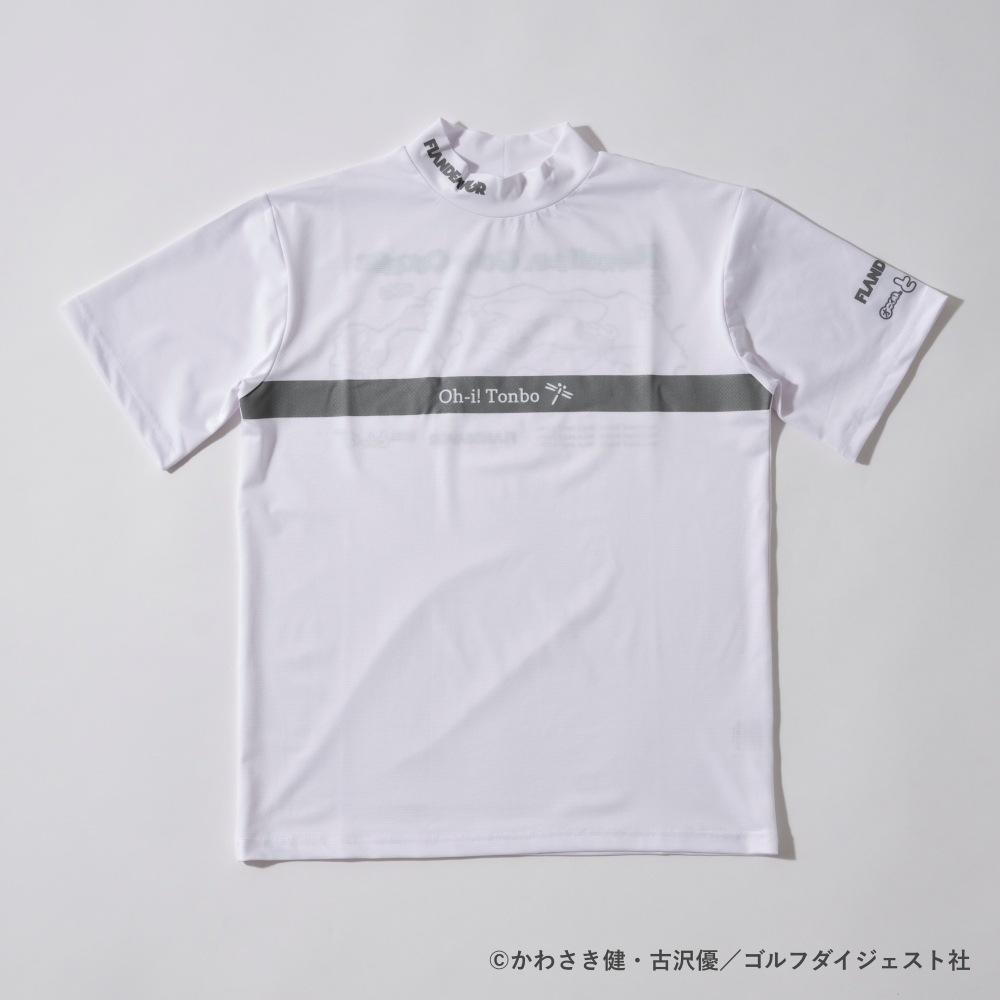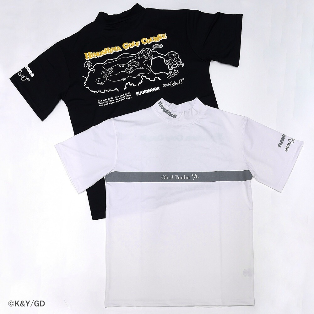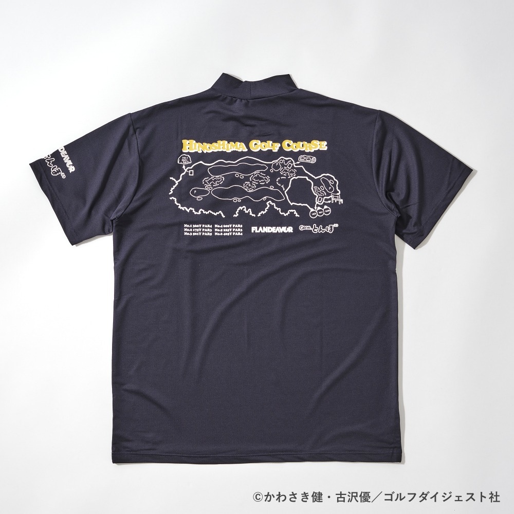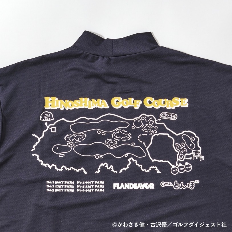 今回「オーイ! とんぼ」とコラボしたのは、香川でアニメグッズ等を手掛けるUTE株式会社のオリジナルゴルフブランド「FLANDEAVOR(フランデバー)」。とんぼが育った、火の島のコースがプリントされたモックネックシャツ。