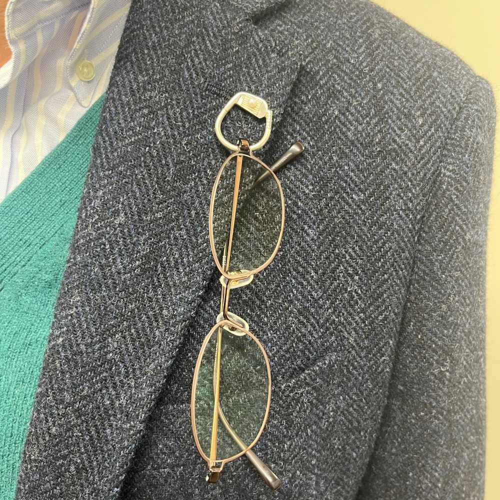 胸元を飾り、眼鏡を支える唯一無二のピンブローチ