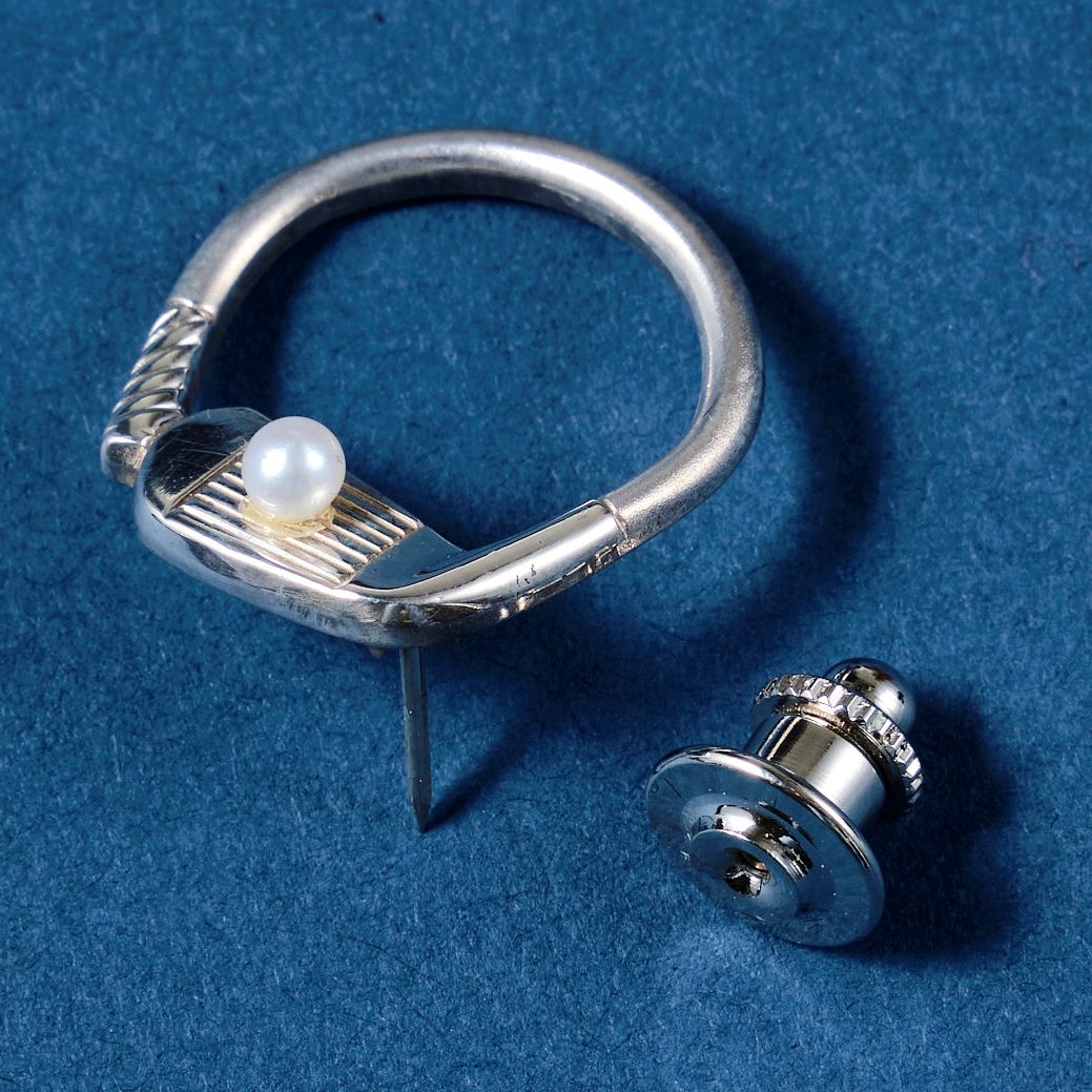 ゴルフ愛好家やおしゃれを楽しむ方におすすめの「ゴルフクラブ眼鏡掛け」。東京の下町・浅草の地で昭和2年に創業した森銀器の職人に丁寧に仕上げられたアイアン型モチーフは、ただの装飾品ではありません。丸い輪状のデザインにより、ジャケットの胸元を飾るピンブローチとしてだけでなく、眼鏡ホルダーとしても使用できる機能性を備えています。そんな機能美を極めた逸品をご紹介します。