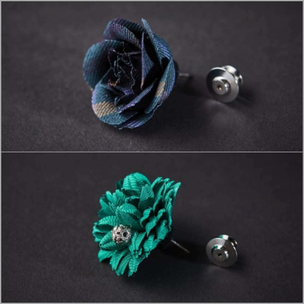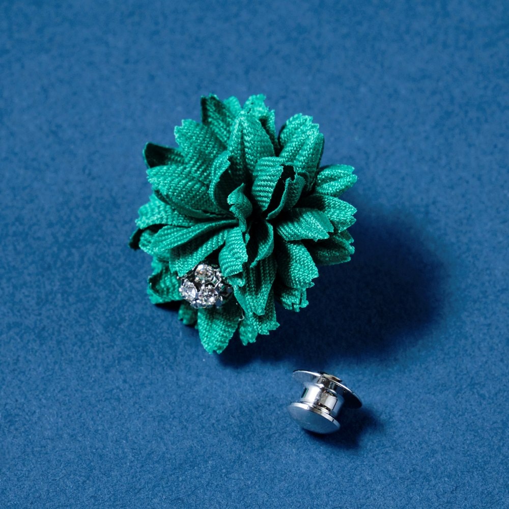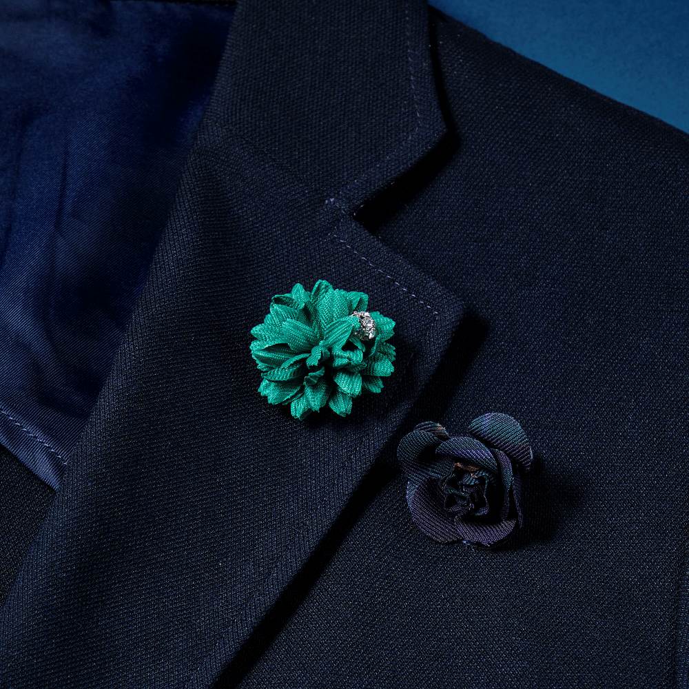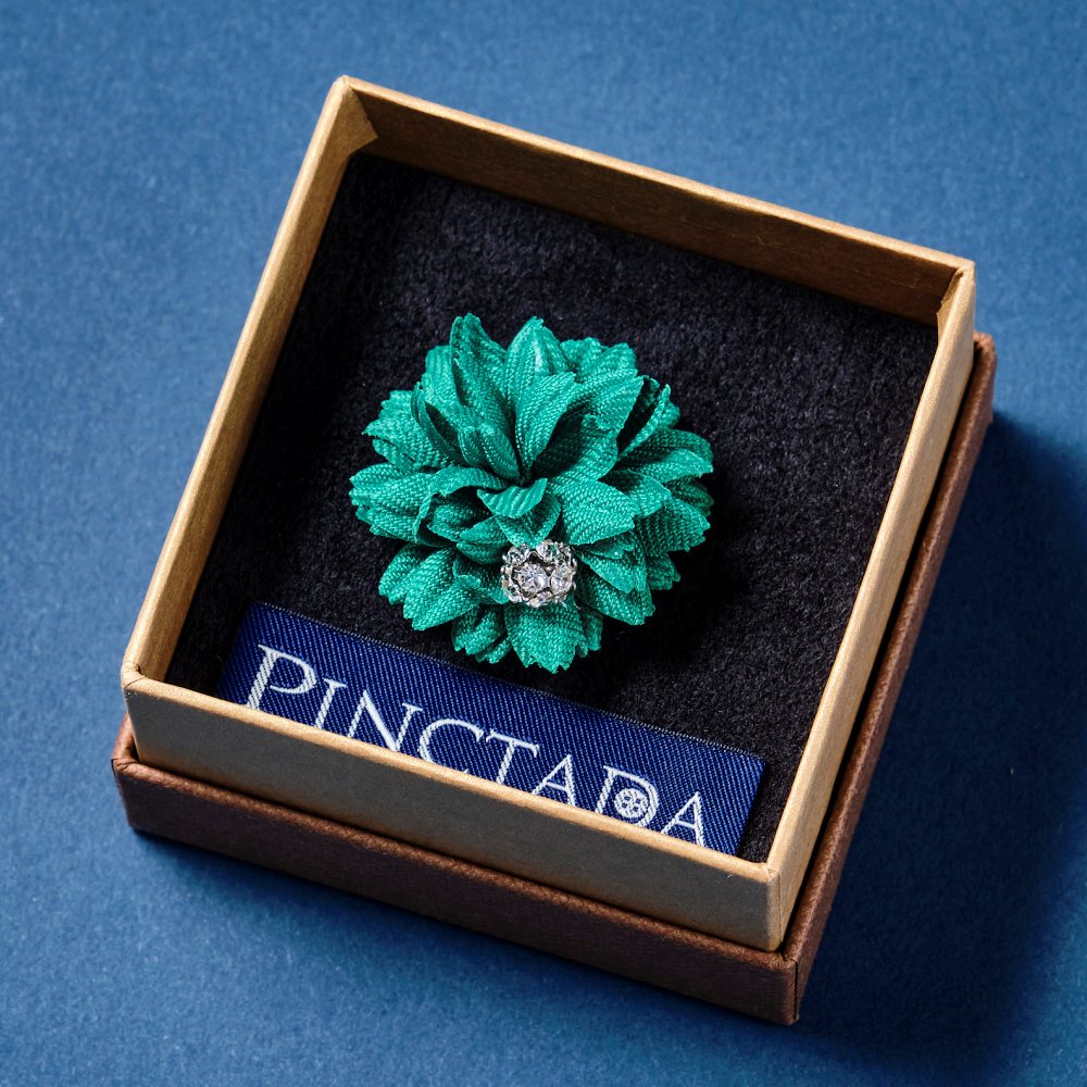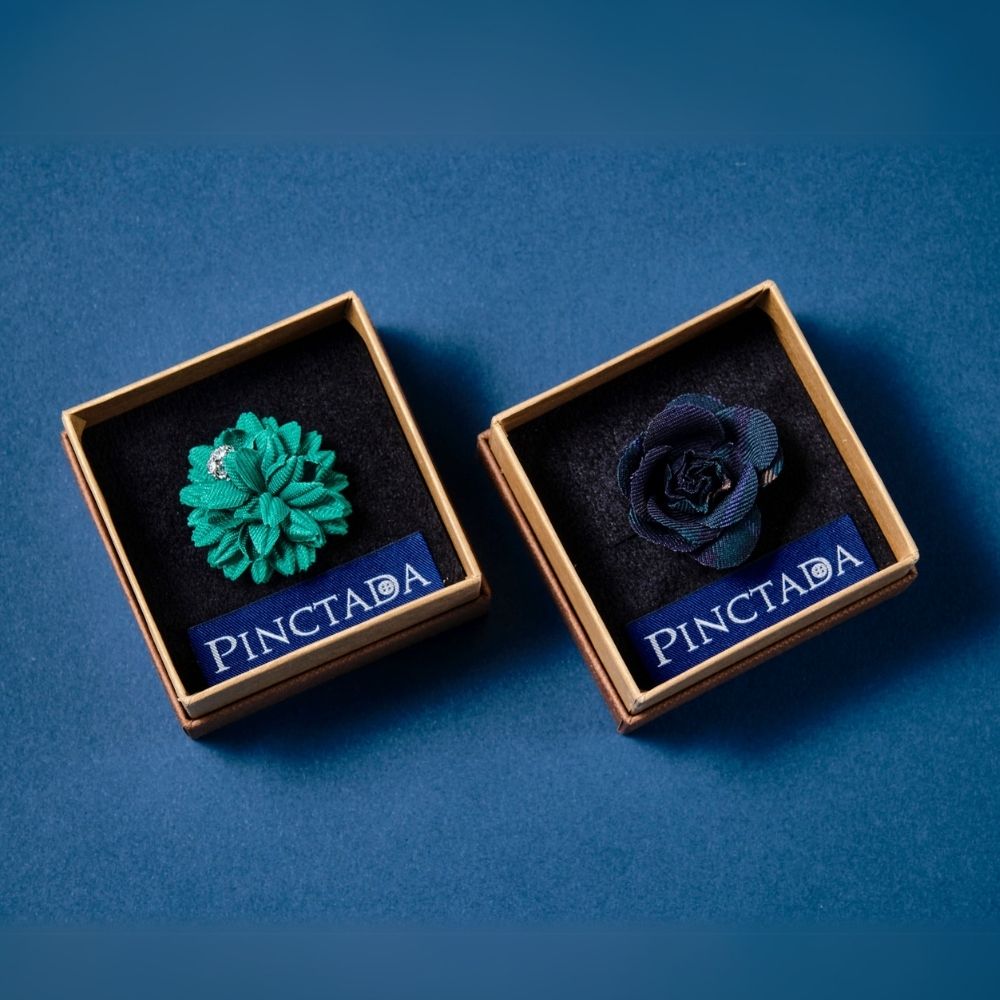 ブートニエールとはフランス語でボタンホールの意。 ジャケットのラペルの穴に花を挿して飾ったことから、花をモチーフにした小さなラペルピンをブートニエールと呼ぶように。