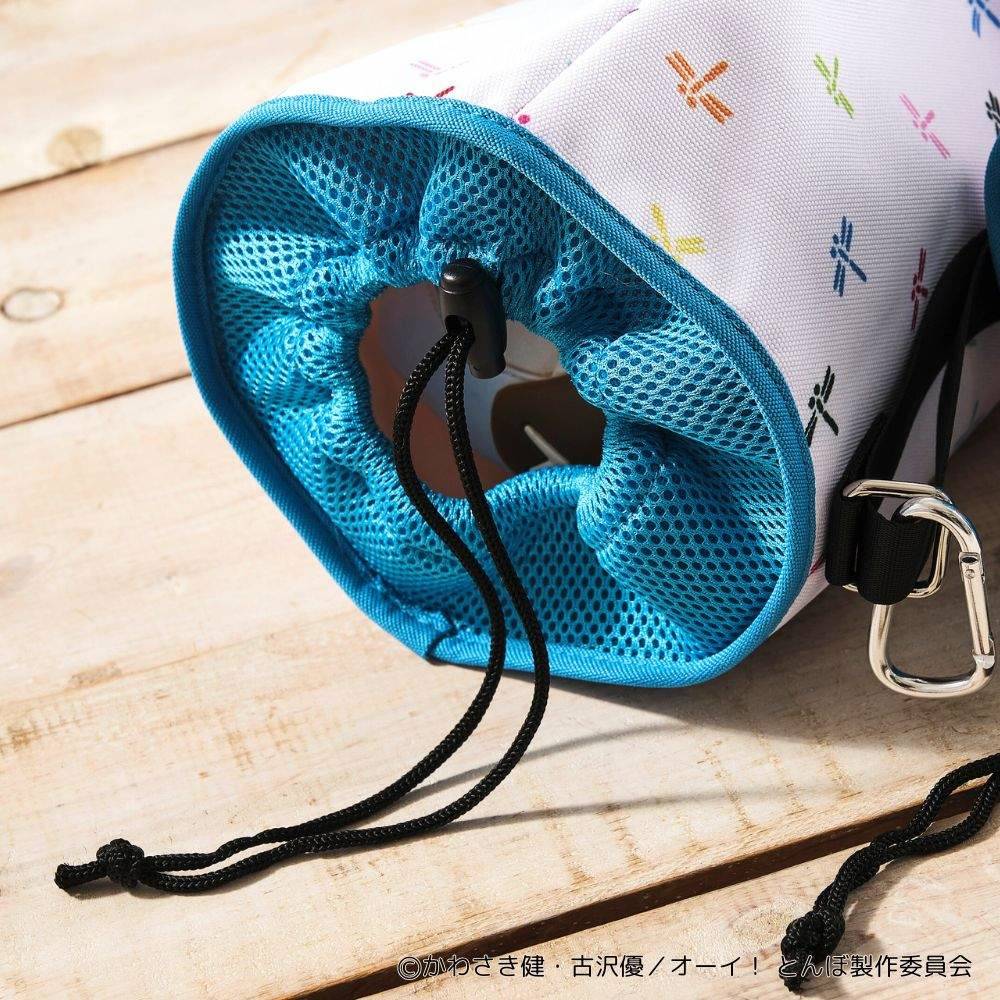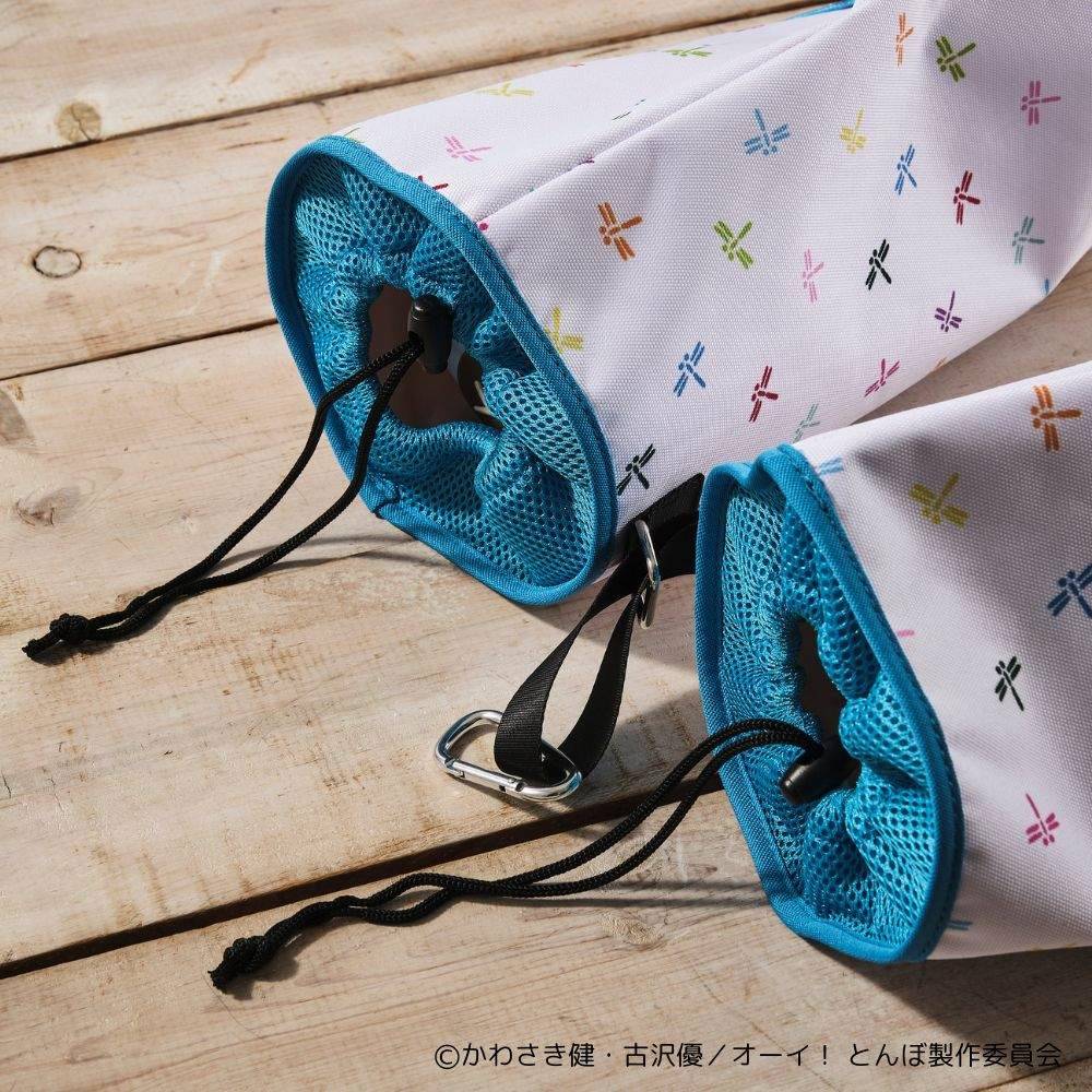 このシューズケースは、靴を1足ずつ収納できる巾着タイプ。移動中に靴同士がぶつかり合って傷つく心配を軽減し、大切なシューズをしっかり守ります。また、中央にはカラビナが付いているため、キャディバッグやバッグに吊り下げて持ち運ぶことも可能。シューズケースとしての実用性と、「オーイ!とんぼ」ファン心をくすぐるデザインが絶妙に融合したアイテムです。