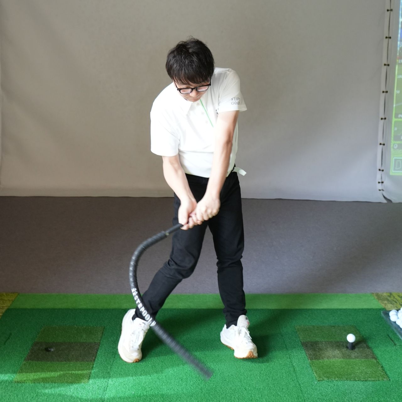 本体部分はゴム製なので、トップでグッとしなります。練習の際には、フレックスロッドを2、3回振って、シャフトがしなる感覚を身に染み込ませてから実際のクラブでボールを打つことを繰り返しましょう。シャフトのしなりを使うことができれば、さらなる飛距離アップが可能になります。