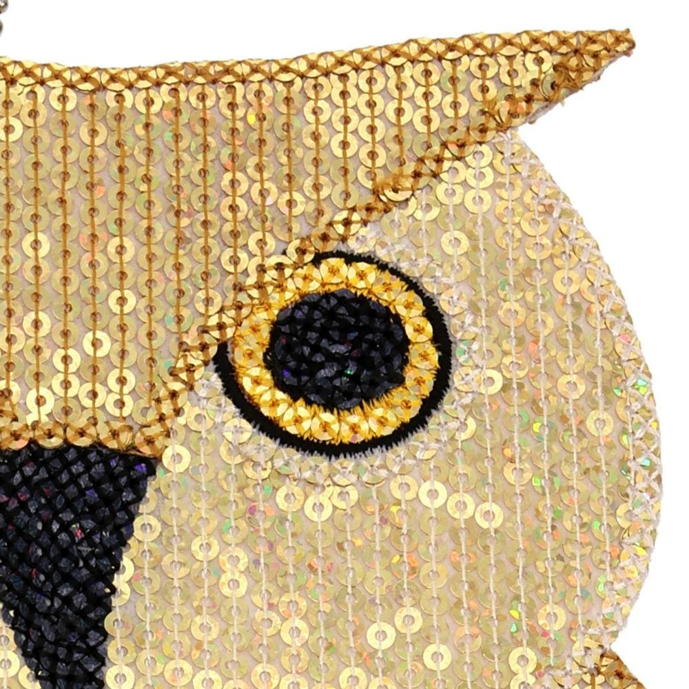スパンコール仕立ての刺繍がキラキラと光を放つふくろう。パットをする姿がかわいらしい、その正体は…… 何と「カラス除け」! 吊るすだけでカラスが寄りつかなくなる優れモノです。