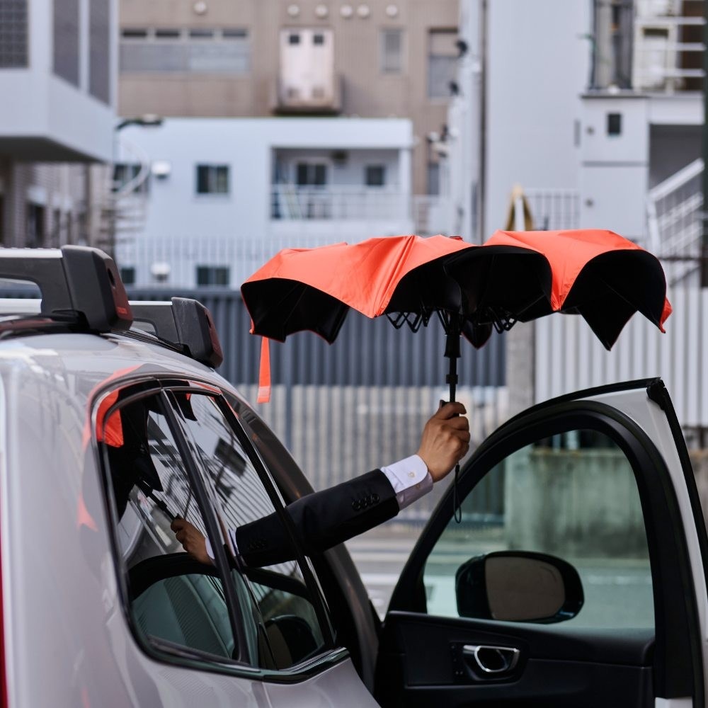 開閉を途中で止めるのもほかの傘ではできない機能のひとつ。車の乗り降りにも最適