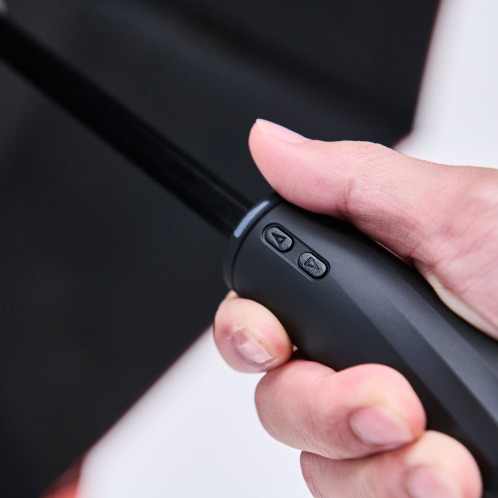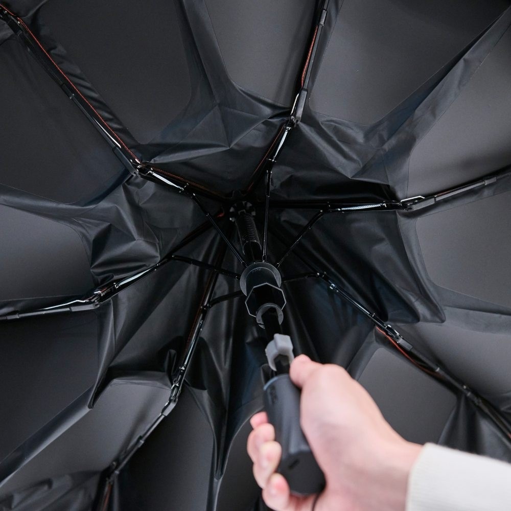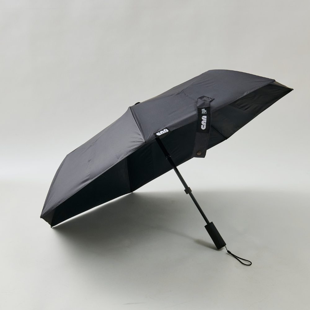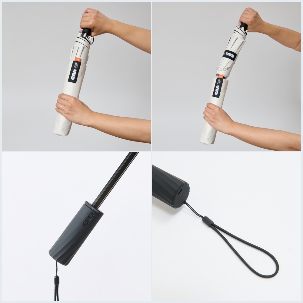 ゴルフでは「プレーファスト」がマナーの基本。急な雨や強い日差しでも、カートの乗り降りや次のショットにすぐ移りたいもの。「CAN」は電動式なので、親指ひとつで傘を開けるだけでなく、閉めるのもボタンひとつ。一般的な自動開閉傘とは異なり、中棒まで自動で収納。力も不要でスムーズです。さらに、開閉の途中、好きなところで止めることができるので、車の乗り降りやクラブハウスの出入りにも便利。風で傘が裏返ってもワンタッチで復元可能で、ラウンド中もストレスフリーに。