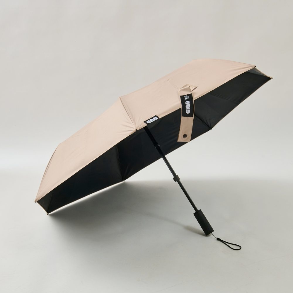 傘の内側にあしらったシートがガイドの役割を果たし、ワンタッチで閉じた後も簡単に畳めます。