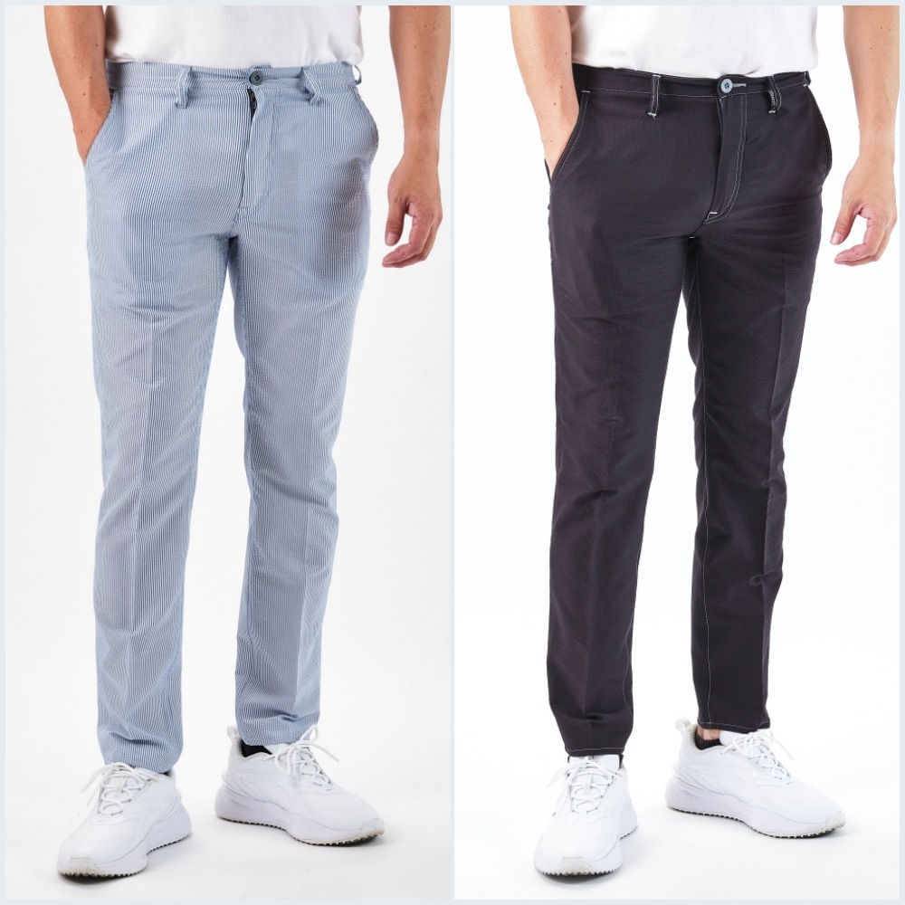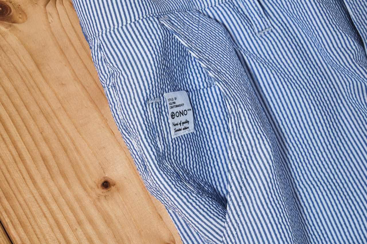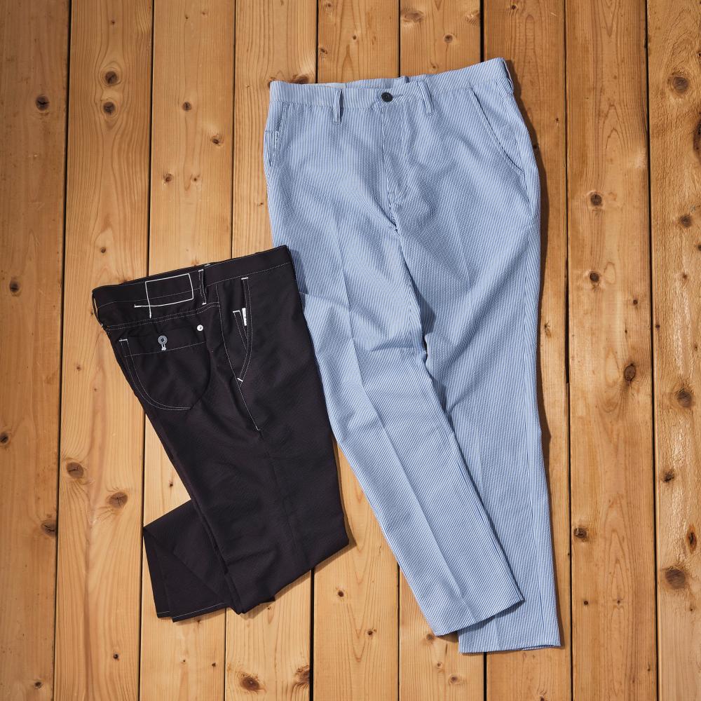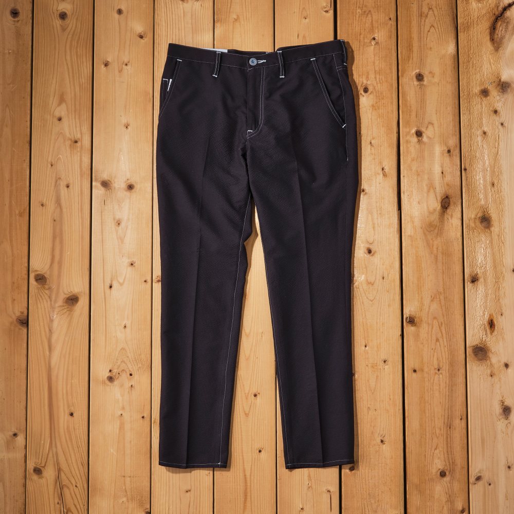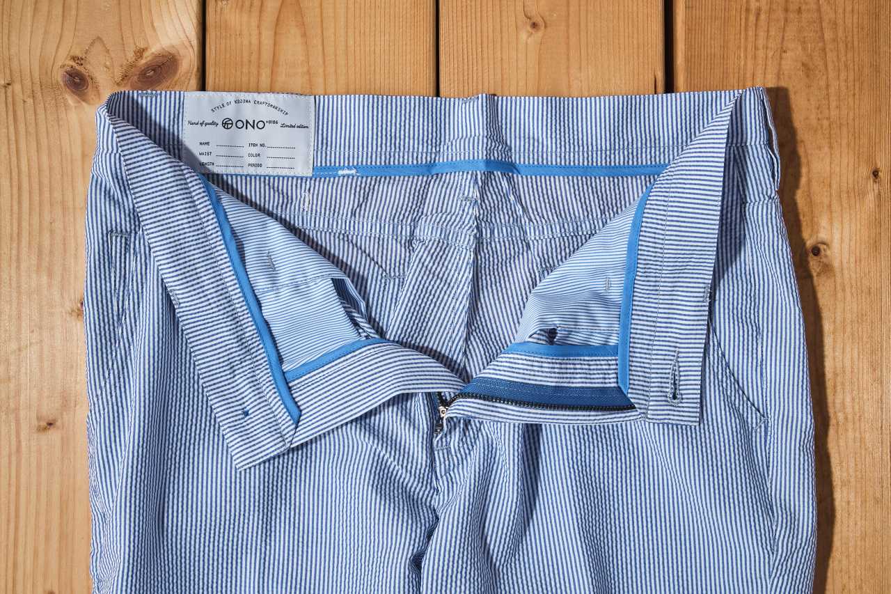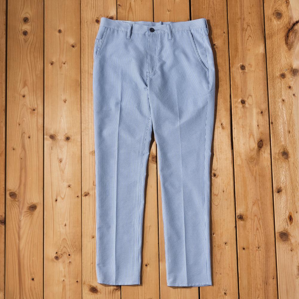 岡山県倉敷市児島に自社工場を持ち、パンツを主力とするメーカーのファクトリーブランド「ONO+8186」。日本人の体形にフィットしたシルエットのパンツが人気。今回は、サッカー生地で通気性のいい、綿混テーパードパンツのご紹介です。