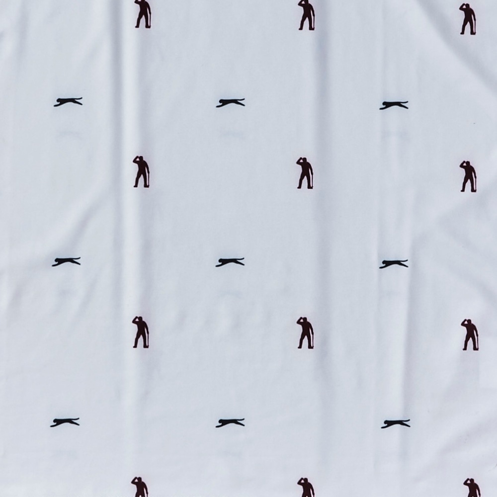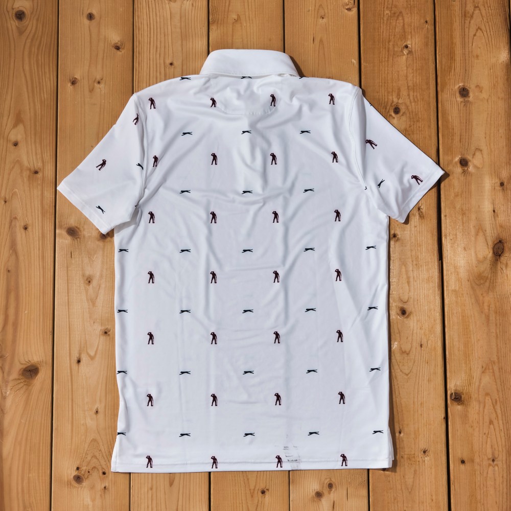 セベのガッツポーズのシルエットと、スラセンジャーのロゴであるヒョウがモノグラムプリントに。愛用のPING®パターのシルエットにまでこだわりました。