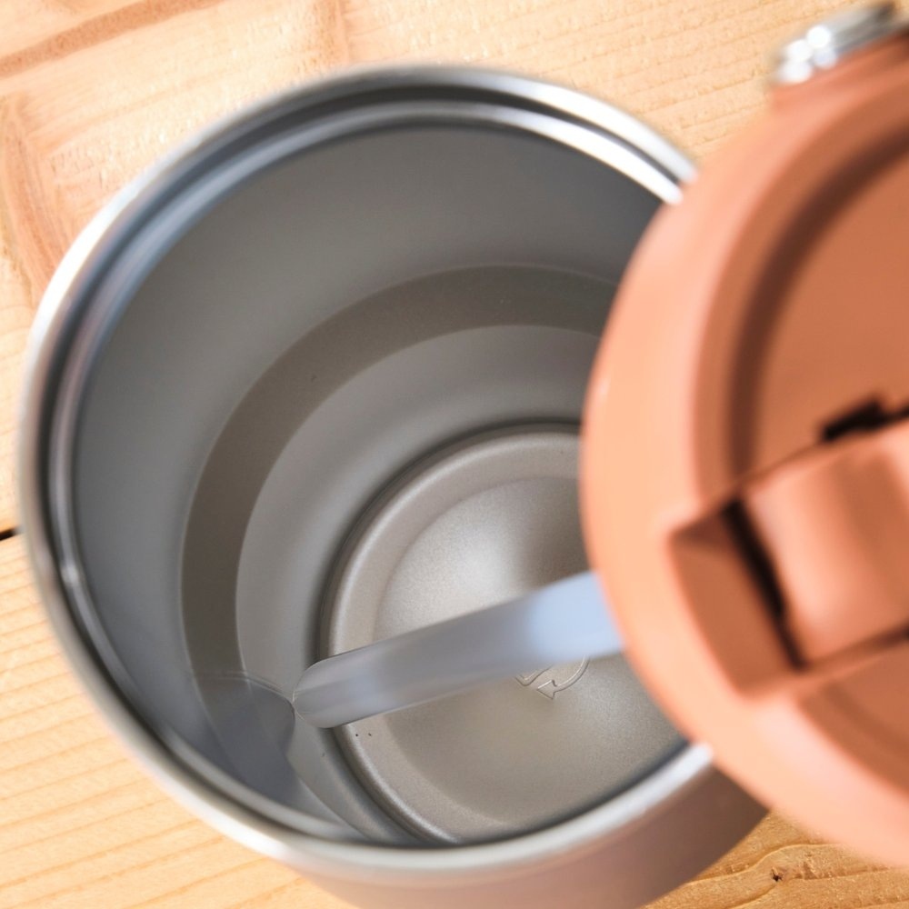 さらに、蓋の飲み口は取り外しが可能になっており、お手入れがしやすいです。ストローも分解して隅々まで洗えるうえ、食洗機にも対応。毎日使っても衛生的で、長く愛用できる安心感があります。