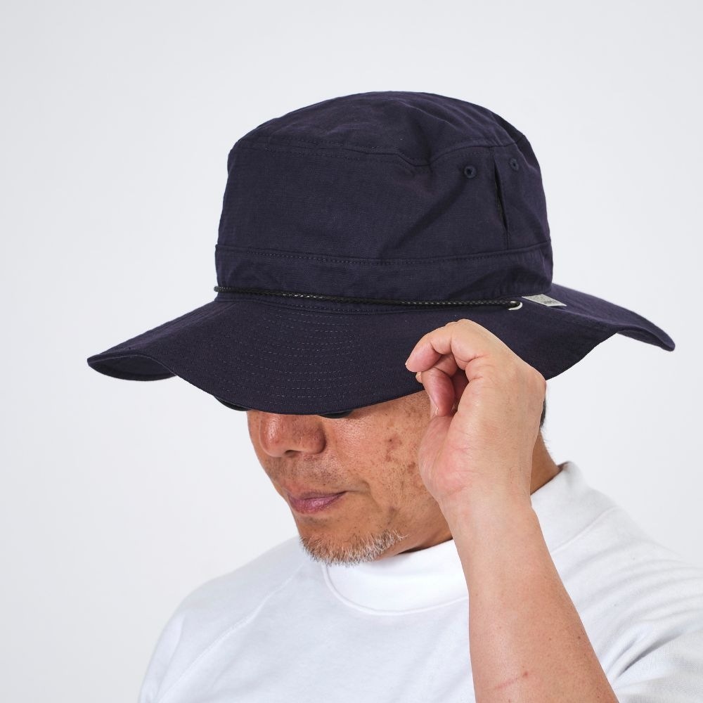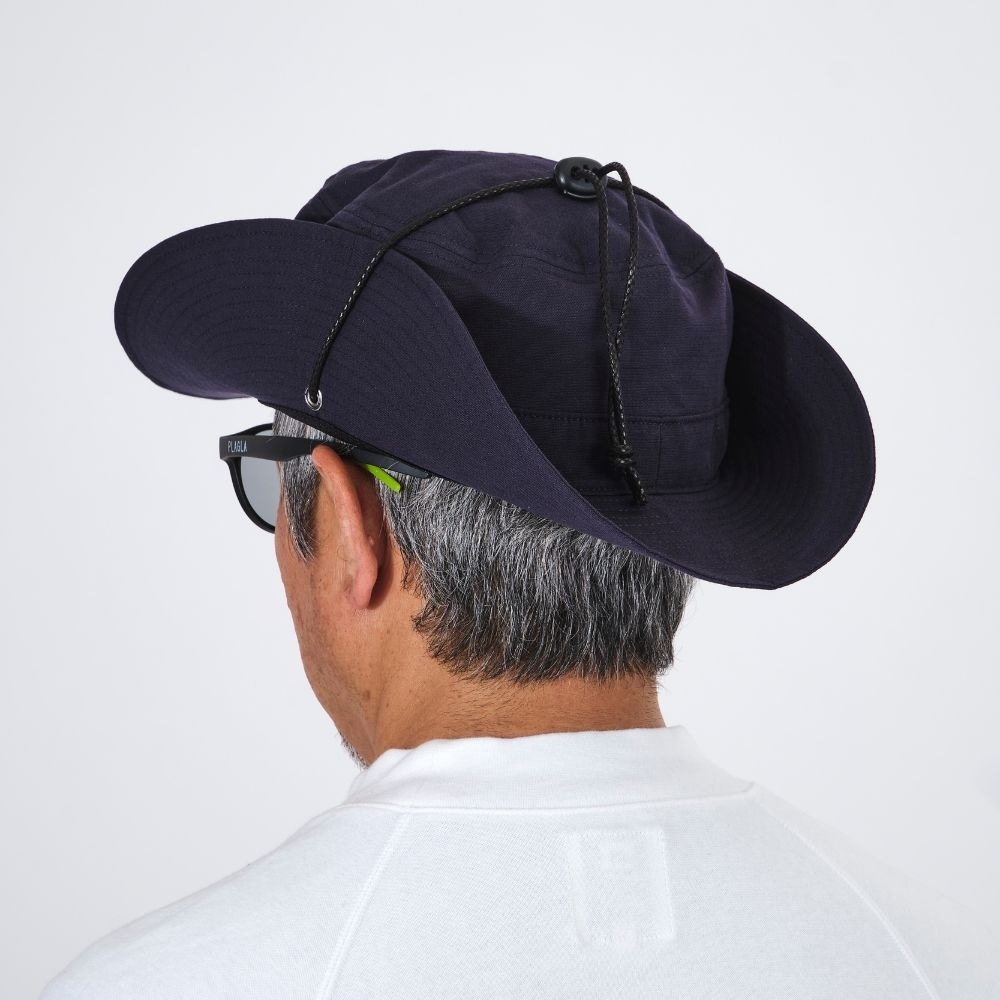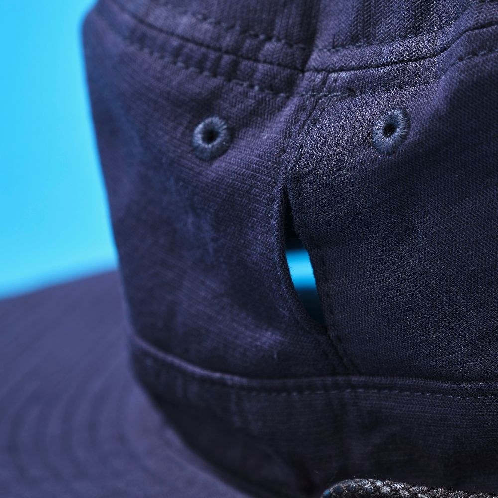 また、ハット型のため、キャップやバイザーではカバーしきれない耳や首まわりまでしっかりと日除けできるのも大きなポイント。左右にはスリットがあり通気性も抜群。暑さによるムレを抑え、長時間のラウンドも快適に楽しめます。