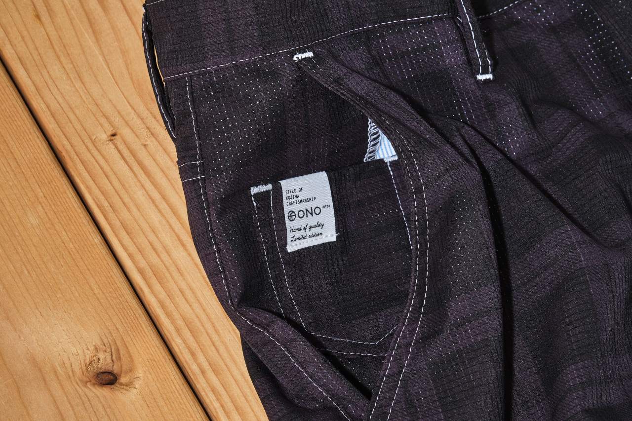 岡山県倉敷市児島に自社工場を持ち、パンツを主力とするメーカーのファクトリーブランド「ONO+8186」。日本人の体形にフィットしたシルエットのパンツが人気。今回は、湿気のある季節でもサラッと穿けるテーパードパンツのご紹介です。