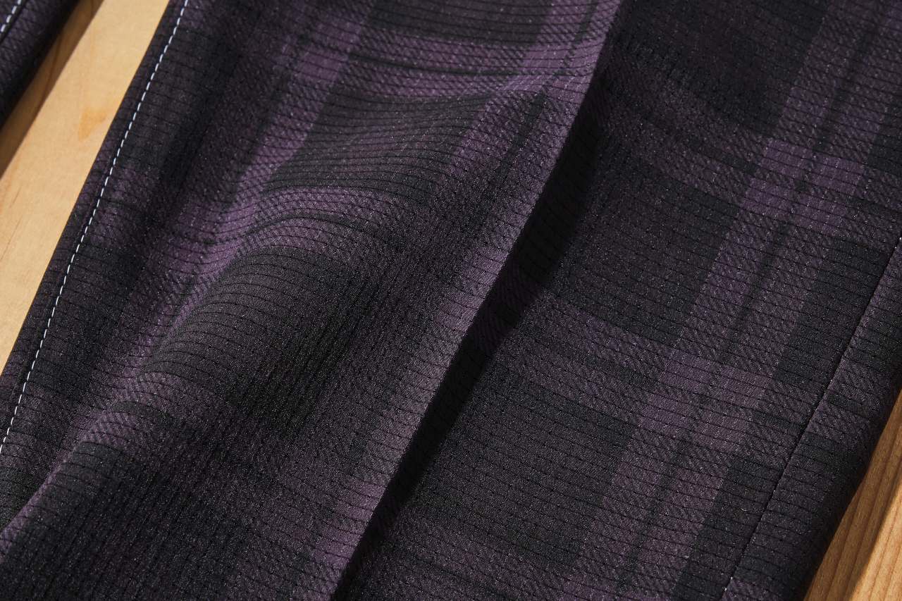 通気性がよく、吸水速乾に優れた接触冷感のあるクールドッツに紺、濃緑、黒のラインが特徴的なタータン柄「ブラックウォッチ」の織柄をプリントで表現しています。