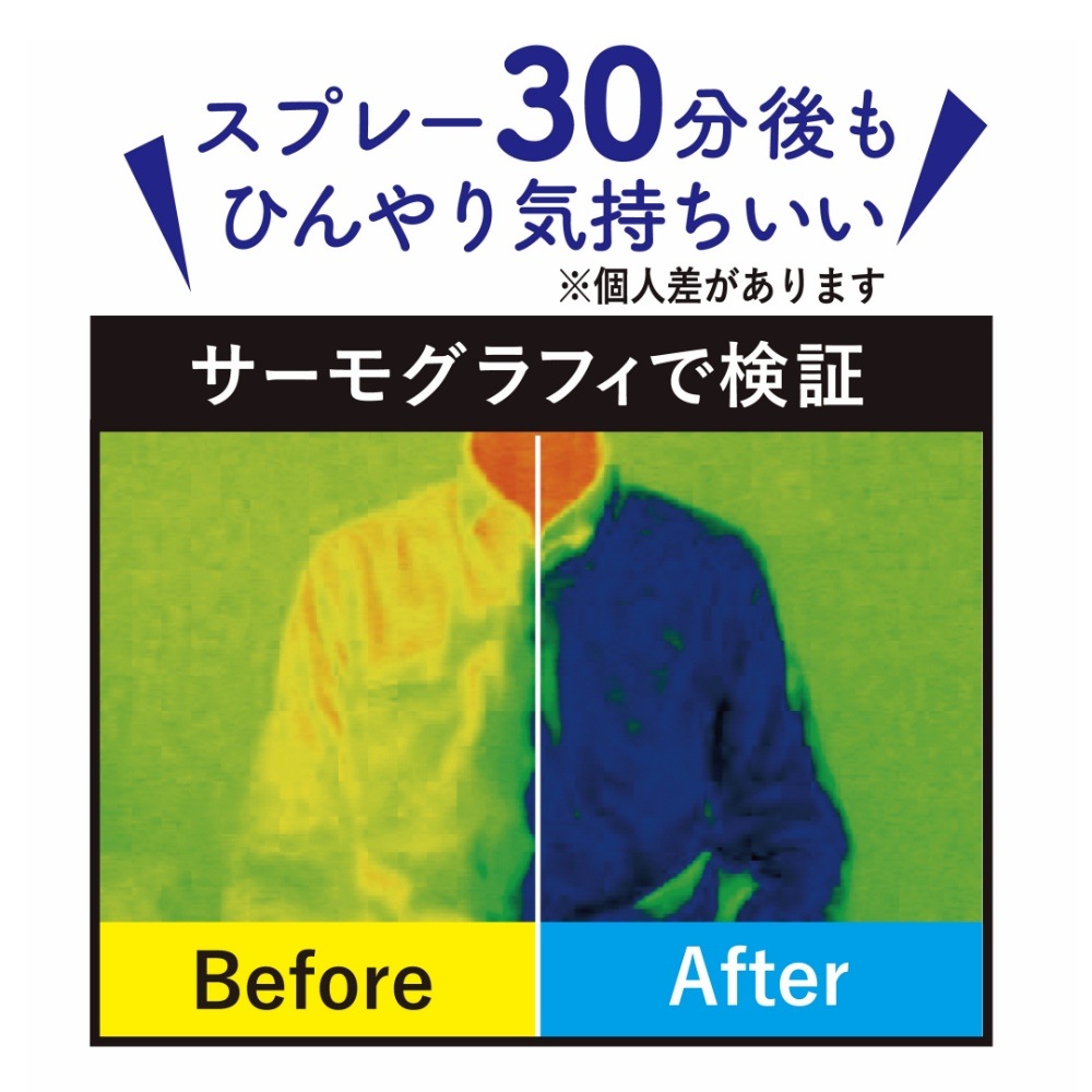 衣類にスプレーするだけで、ひんやり極涼感。効果は約30分〜1時間持続し、汗をかくたびにひんやり感が復活!ラウンド中も快適さが続くから、夏ゴルフの頼れる味方。 さらに、汗臭・加齢臭を95%以上カットする消臭効果、99.99%以上の除菌効果も。無香料タイプなので同伴者にも気を遣わず、いつでも気軽に使えます。