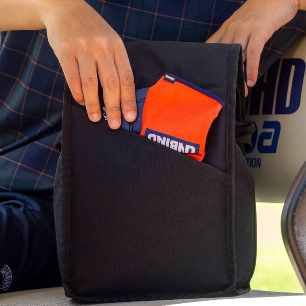 開閉は面ファスナーで素早くアクセスできるフラップ式。断熱材の高さを調整することで密閉度もアップ。カラーはシンプルなブラックで、清潔感とクールさを兼ね備えたデザインです。